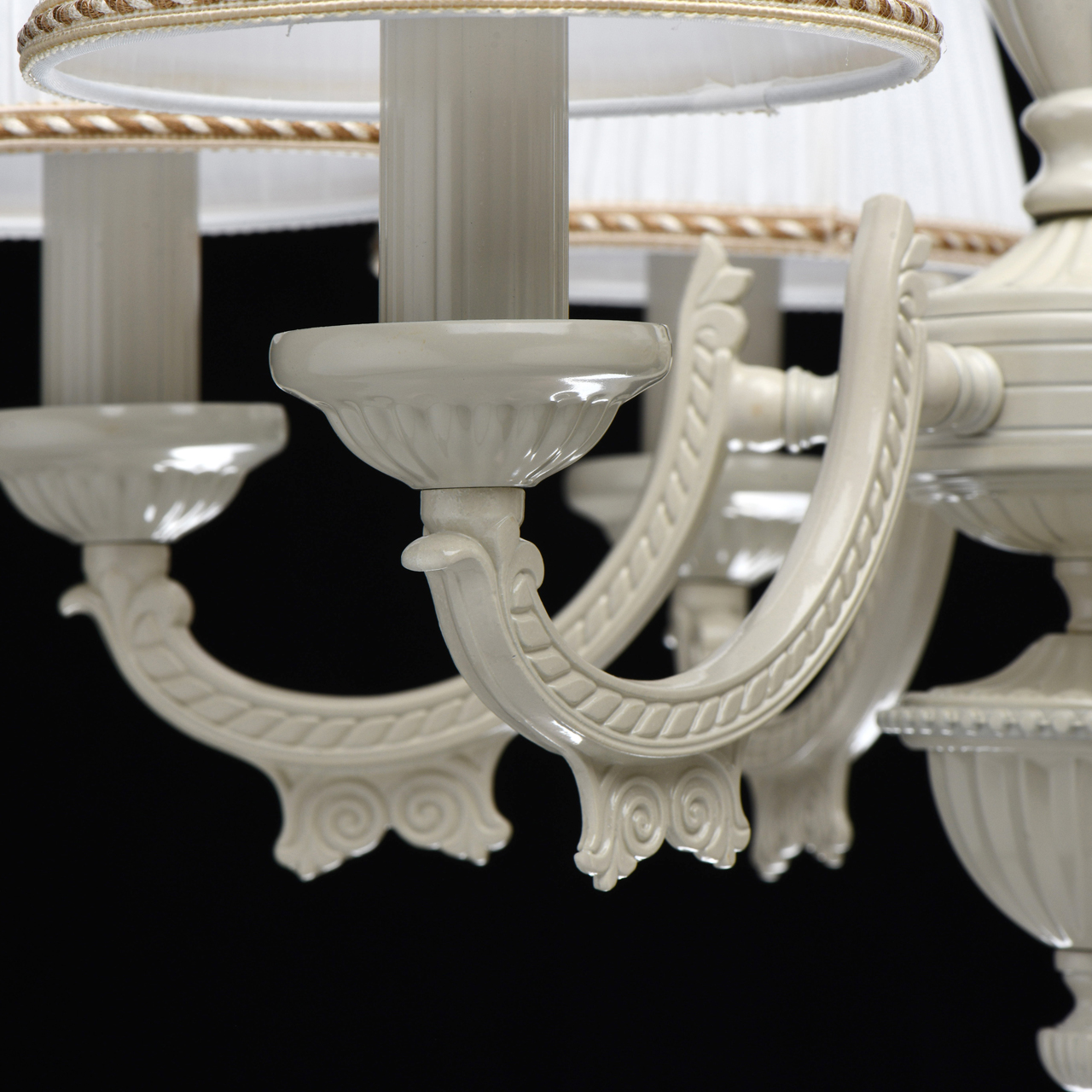 Металлическое основание цвета золота и слоновой кости. Абажуры: бежевый плиссированный текстиль, с кантом.Технология производства