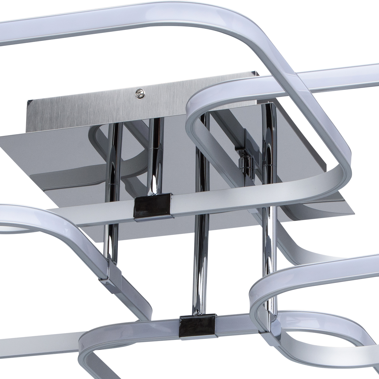 Необыкновенный современный светильник «Аурих» выполнен в стиле «минимализм». Хромированное основание из металла гармонирует с серебристым оттенком плафонов и белыми акриловыми вставками, декорирующими источник света. Плафоны оформлены в форме оригинальных квадратных дуг с закругленными углами, а в качестве источника света выступает светодиодная лента. Подобное воплощение светильника делает его идеальным как для крепления на потолок, так и для крепления на стену, для создания необычного светового декора в современном интерьере. Подходит для стандартных потолков.Преимущества модели