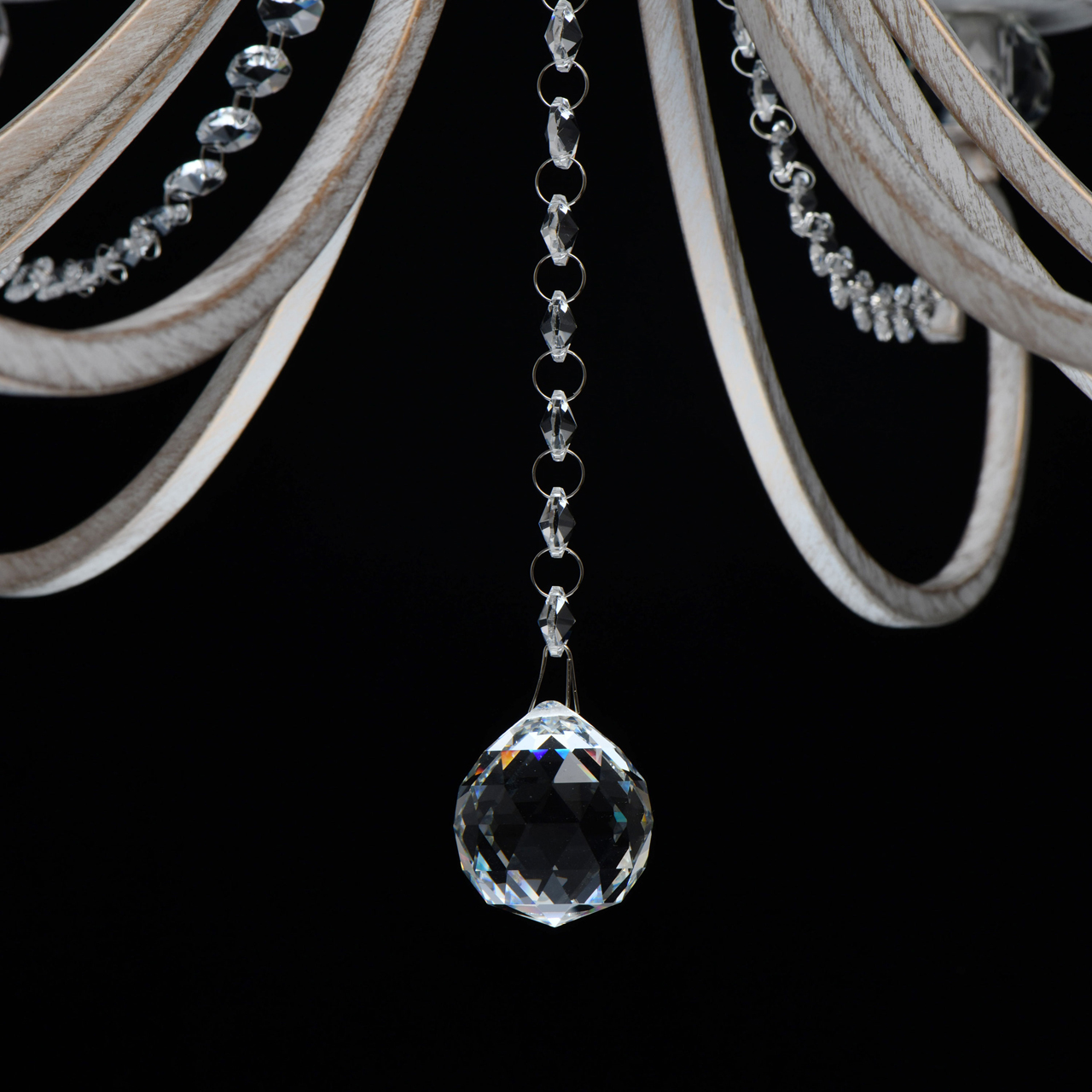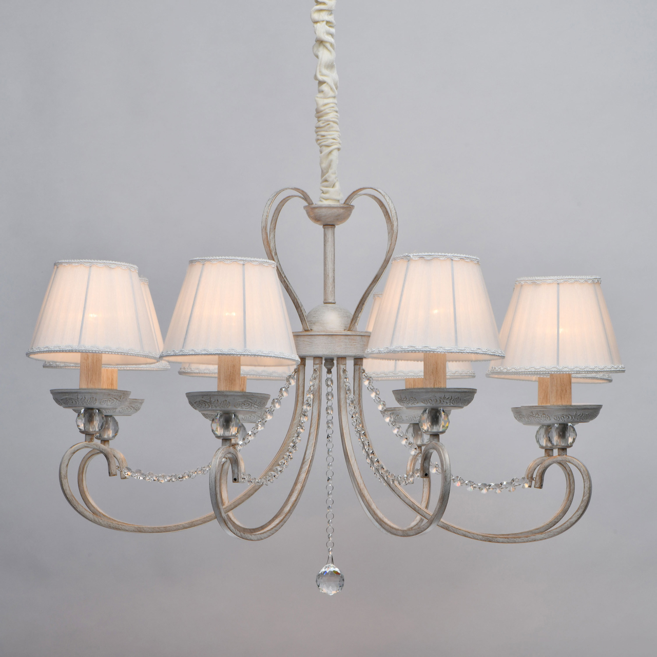 Элегантный светильник в стиле неоклассики. Декор из нитей хрусталя придает светильнику дополнительное изящество. Абажуры создают мягкое рассеянное освещение. Полная семья решает задачи общего и зонального освещения. Широкий диаметр обеспечивает высокие показатели освещенности.Стилевые решения интерьера