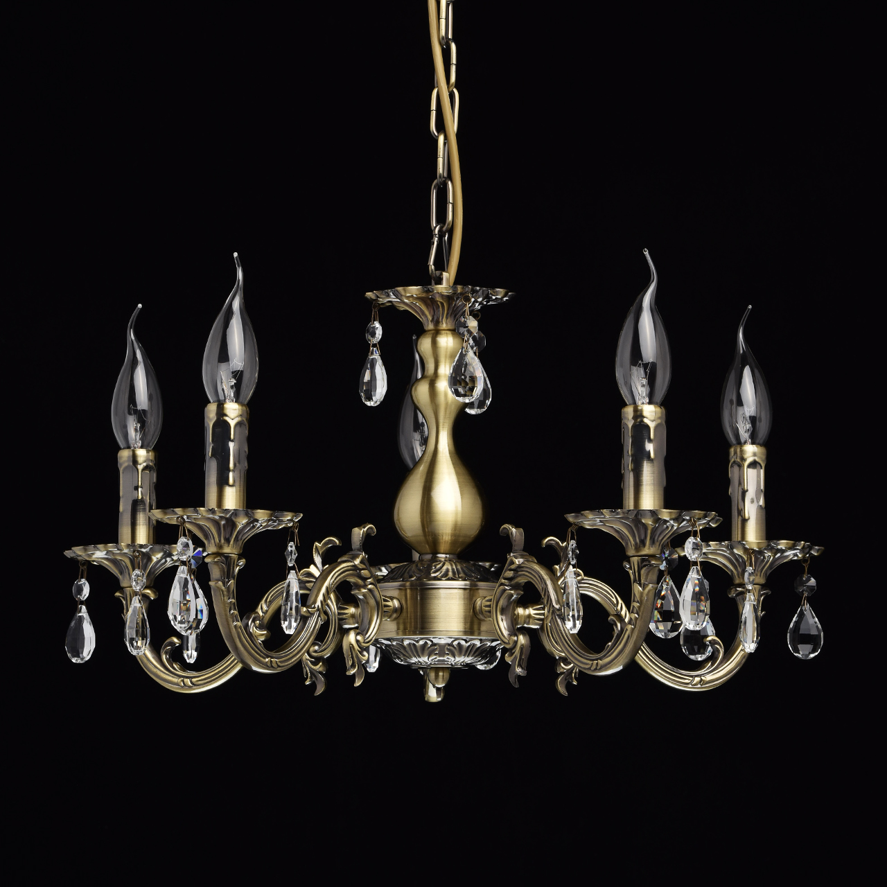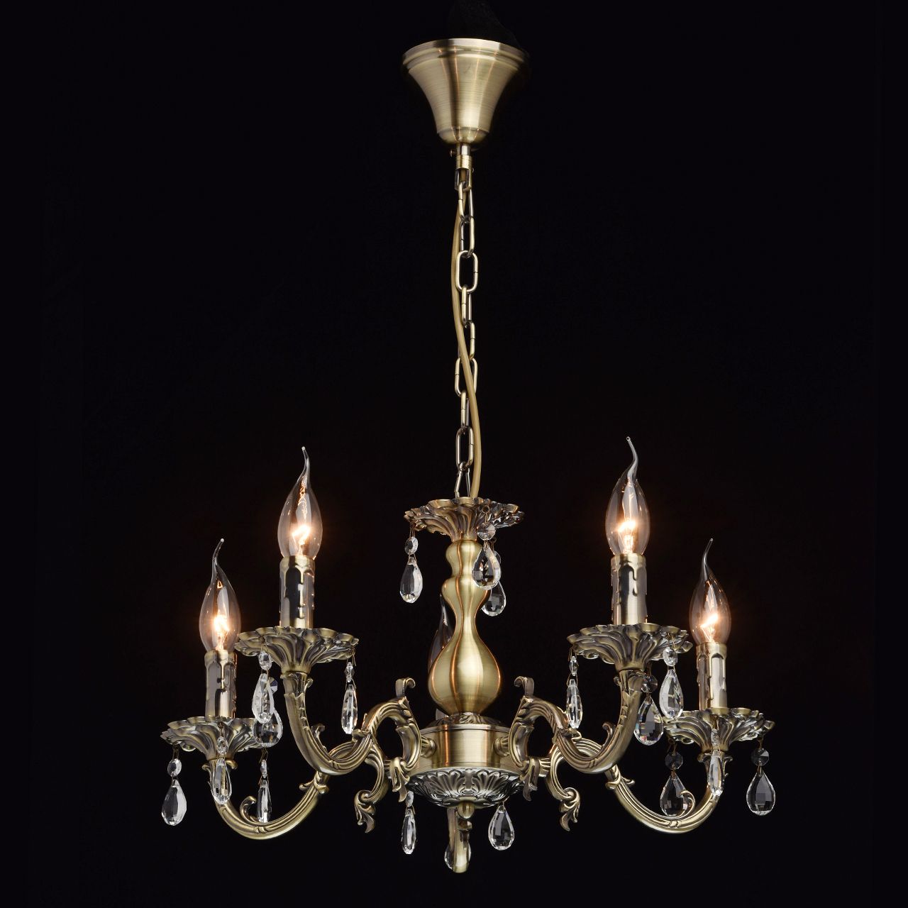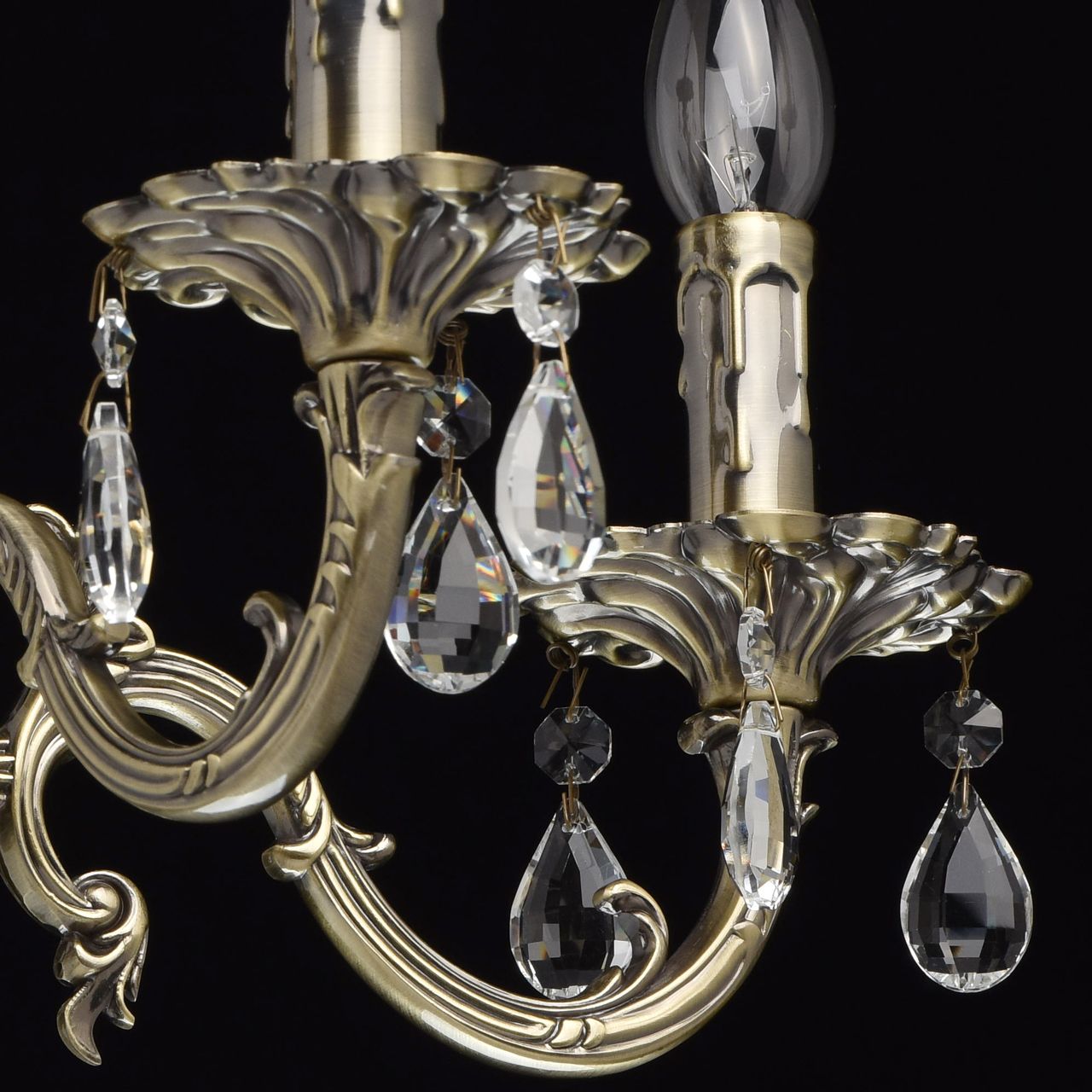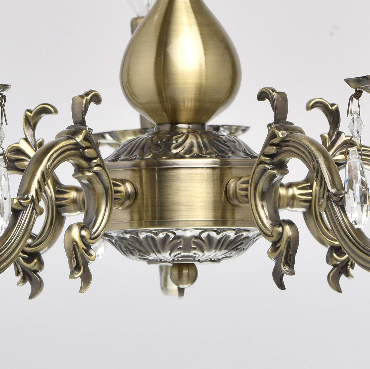 Люстра из коллекции «Аврора» сочетает в себе классическую красоту и продуманные до мелочей детали. Потолочная чаша цвета античной бронзы плавно переходит в изящно изогнутые резные рожки. Композицию дополняют свечи – источники света. Декор из прозрачных хрустальных подвесов создает нежные переливы и придает светильнику парадный вид.Преимущества модели