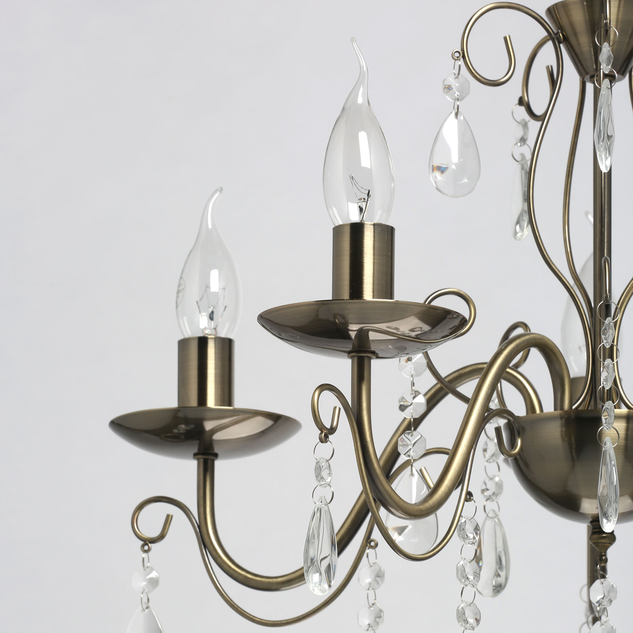 Основание светильника выполнено из металла и гальванизировано в цвет античной бронзы. Светильник декорирован прозрачным хрусталем.Тип помещения
