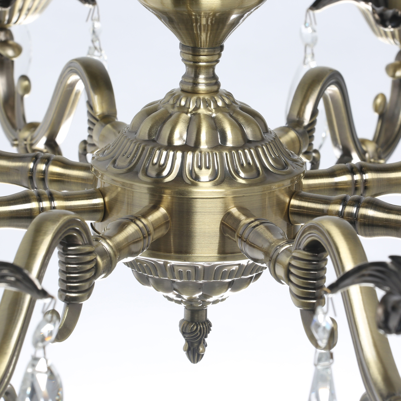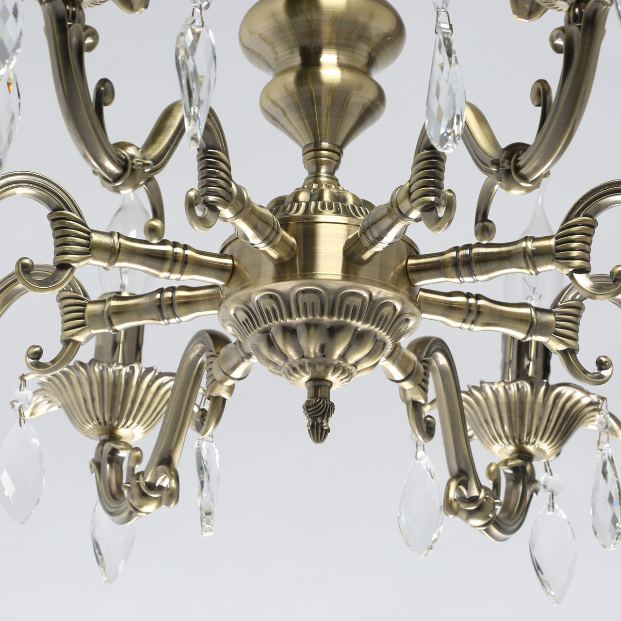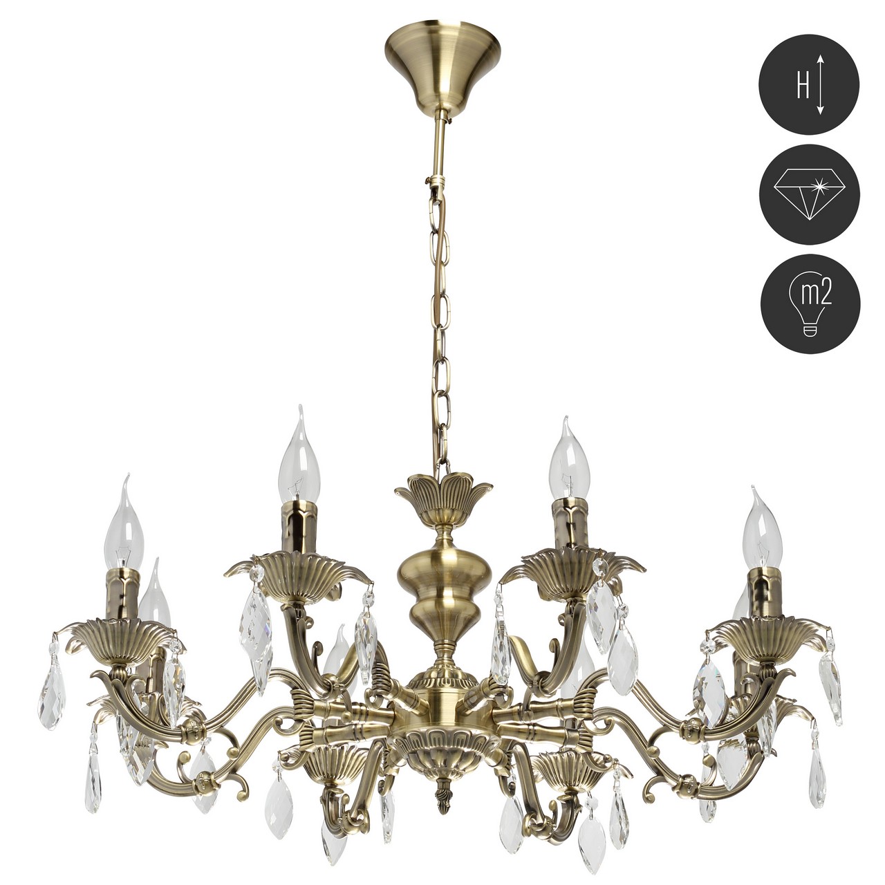 Классическая форма свечи цвета античной бронзы со старинной патиной для интерьеров в традиционном стиле. Хрустальные подвески на резной розетке придают легкости конструкции. Декор художественного литья на рожках и основании модели. Возможность регулировать высоту светильника за счет звеньев цепи.Стилевые решения интерьера