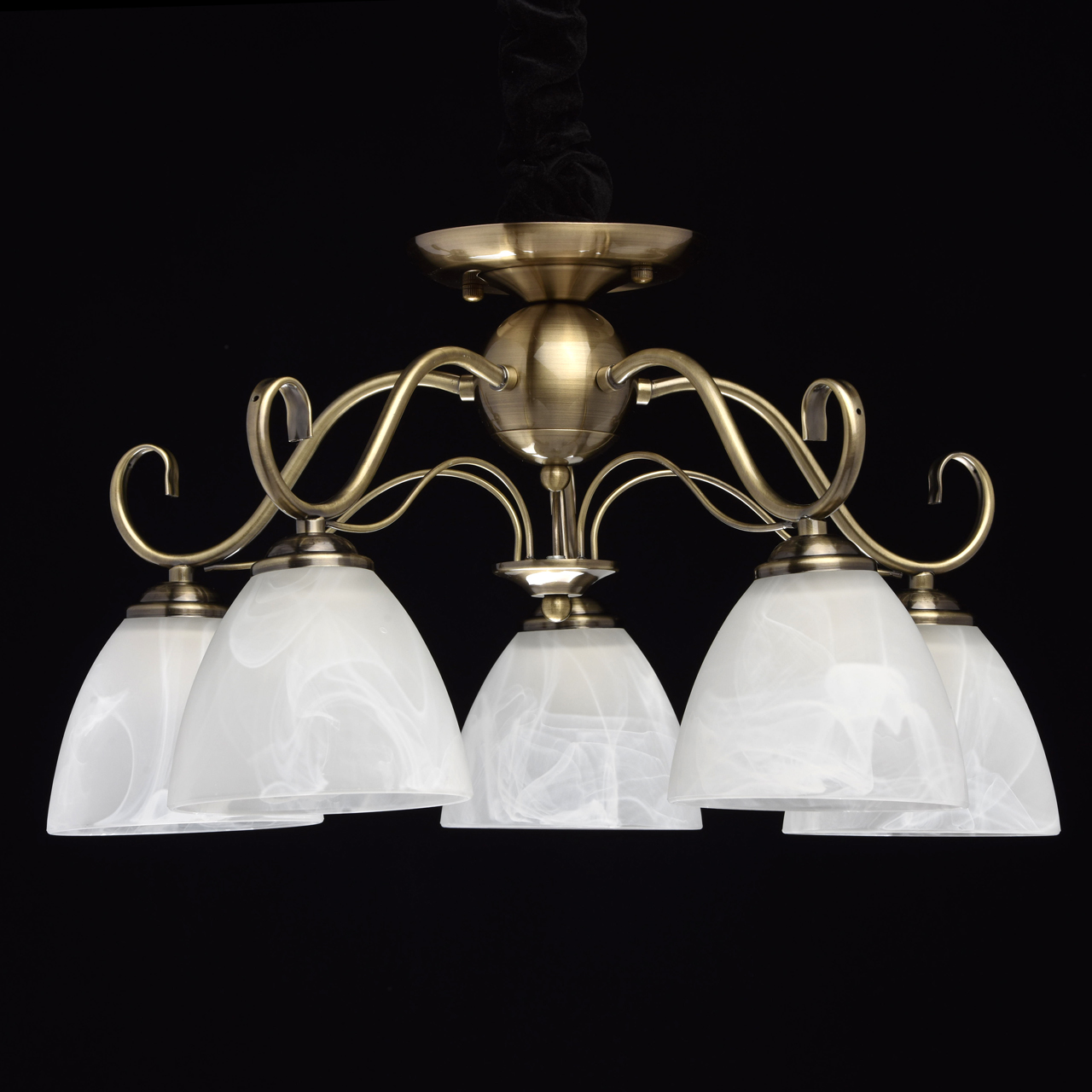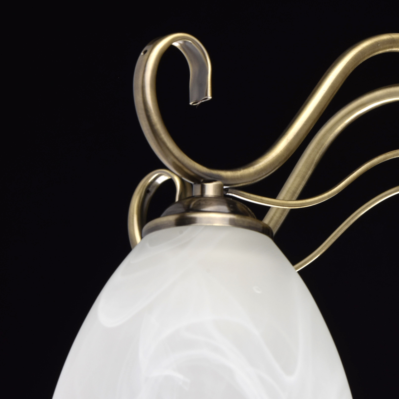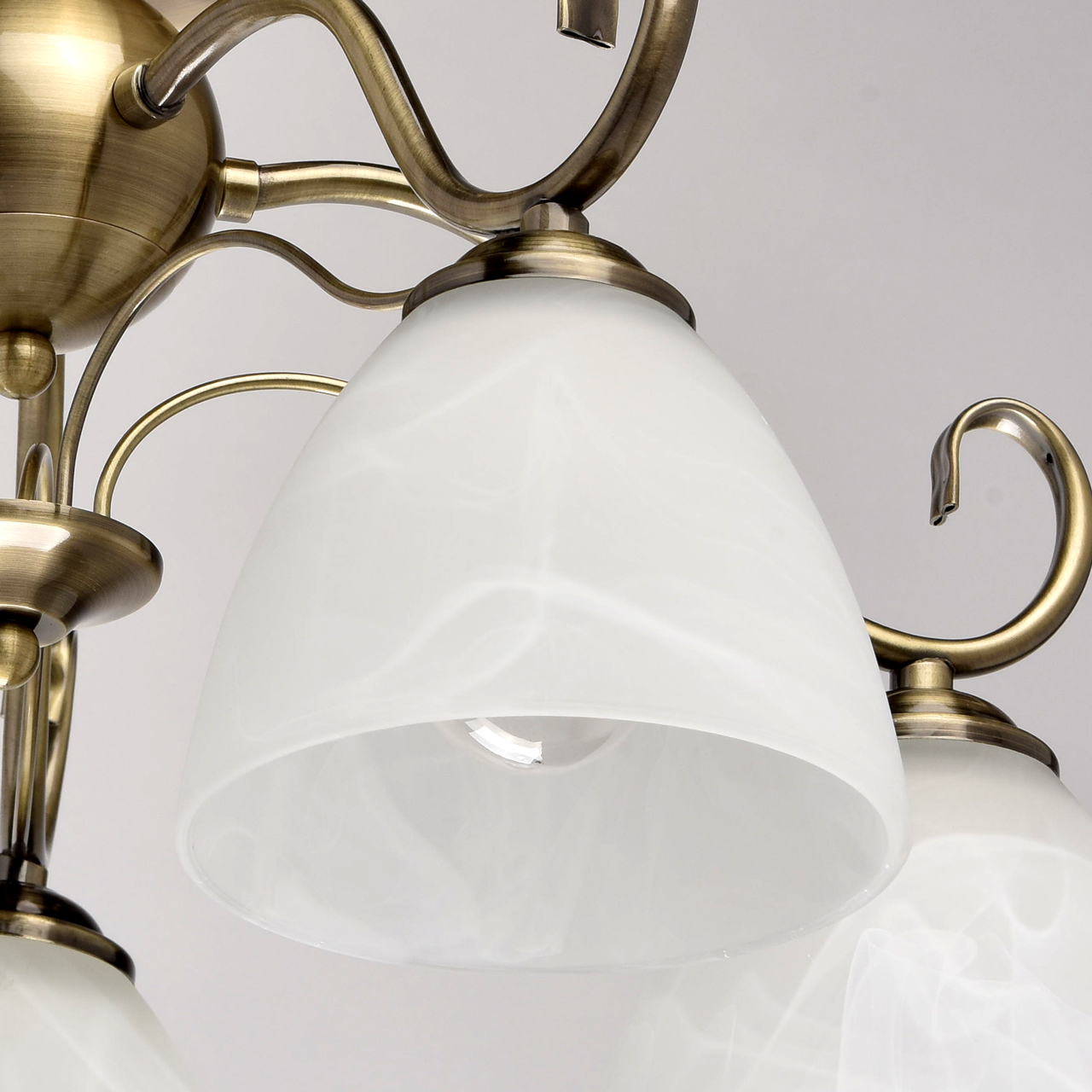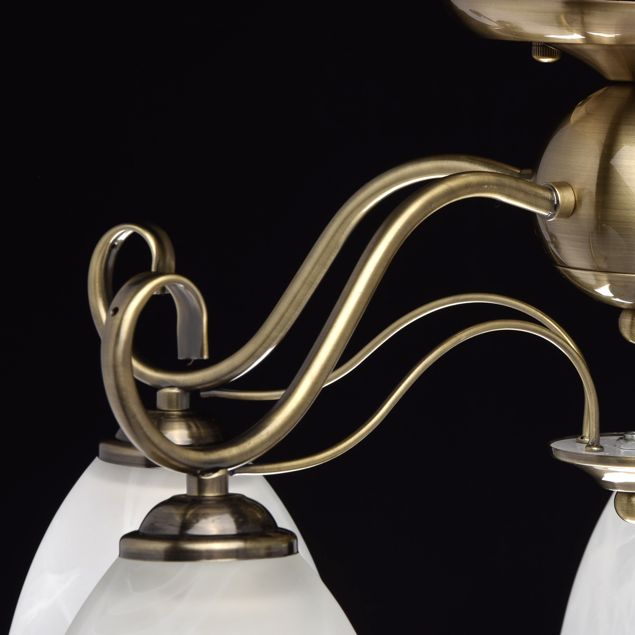 Простота и элегантность сочетаются в люстре из коллекции «Блеск». Основание из металла цвета античной бронзы плавно переходит в волнообразные изящные рожки. Благородный оттенок и красивые изгибы идеально подчеркивают строгие плафоны из алебастрового стекла. Люстра займет достойное место в классическом интерьере.Преимущества модели