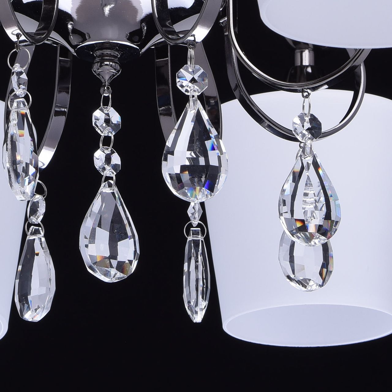 Металлическое основание цвета никеля. Плафоны: стеклянные матированные плафоны. Декор: хрустальные подвески.Технология производства