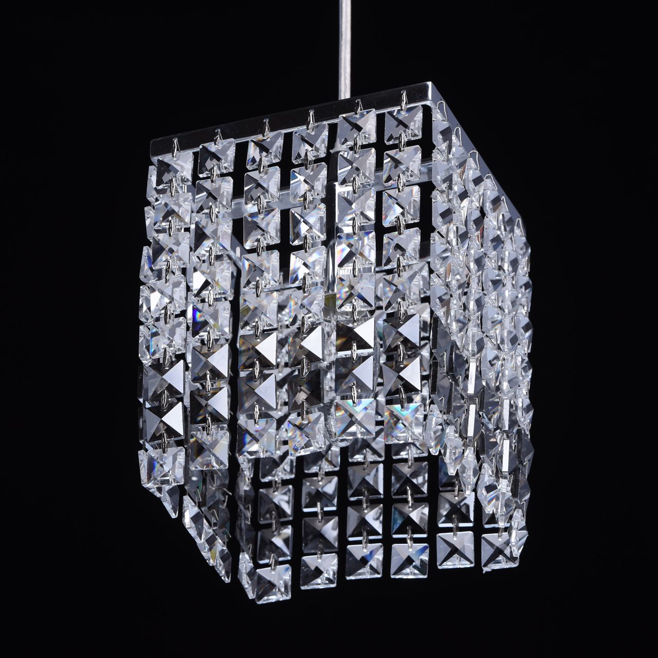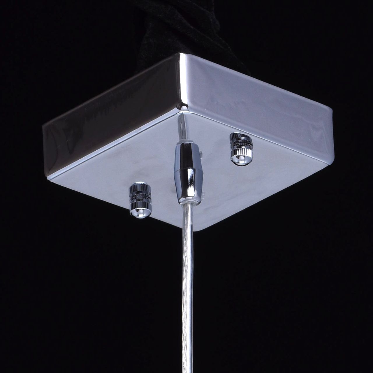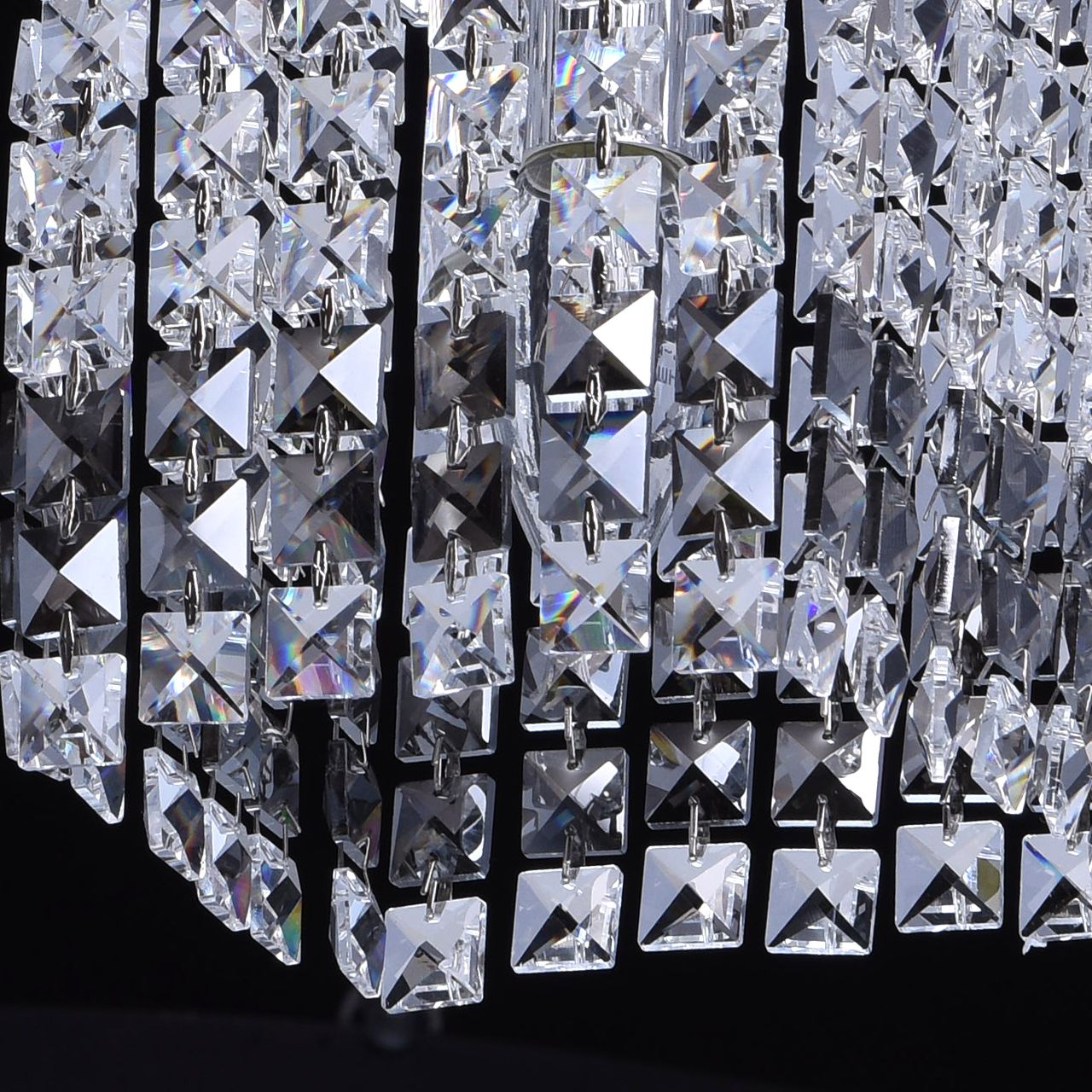 Основание светильника выполнено из металла, гальванизации в цвет хром. Потолочная чаша: металл, прессование. Декор: хрусталь: квадрат прозрачный и гальванизированный в цвет антрацит.Тип помещения