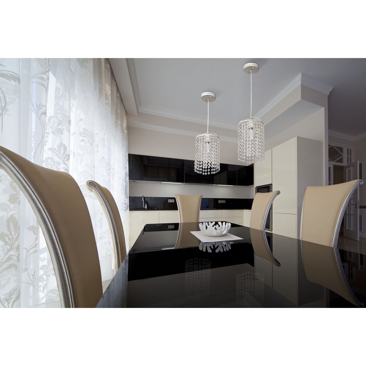 Гламурный дизайн. В декоре используется высококачественный хрусталь. Высокие параметры освещенности. Рекомендуется использовать в комбинации из нескольких светильников. Великолепная игра света и блеск хрустальных подвесок. Крепление на планку.Стилевые решения интерьера