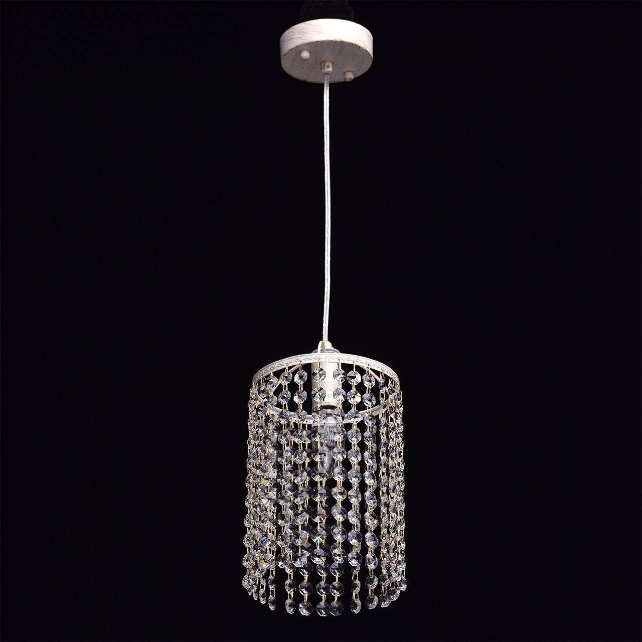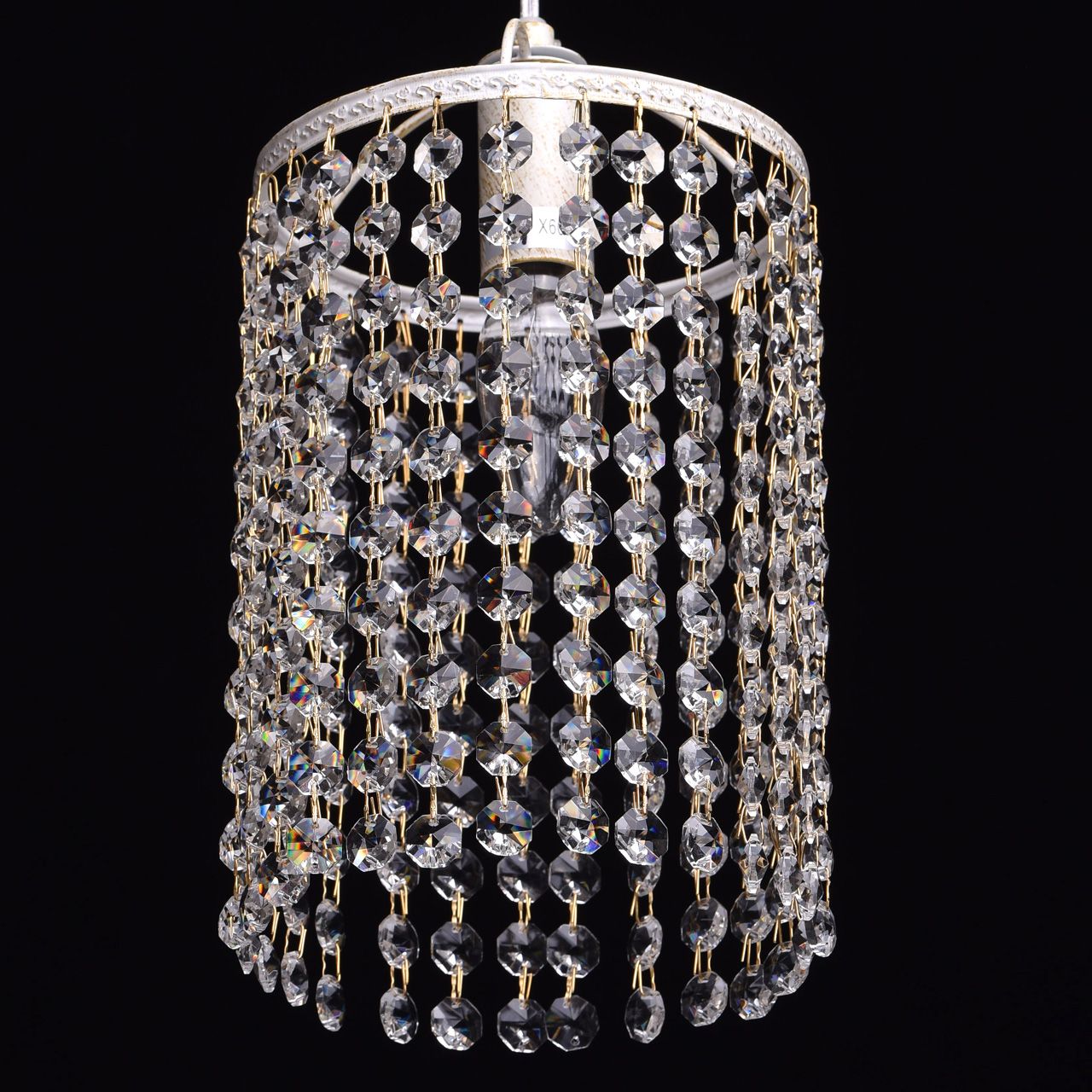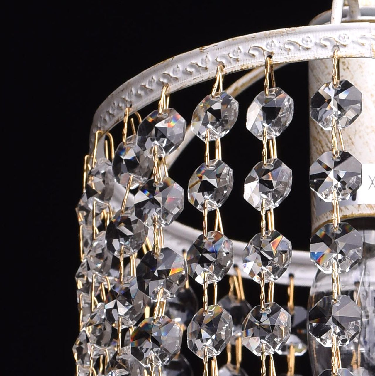 Металлическое основание белого и золотого цвета. Декор хрустальные подвески.Технология производства