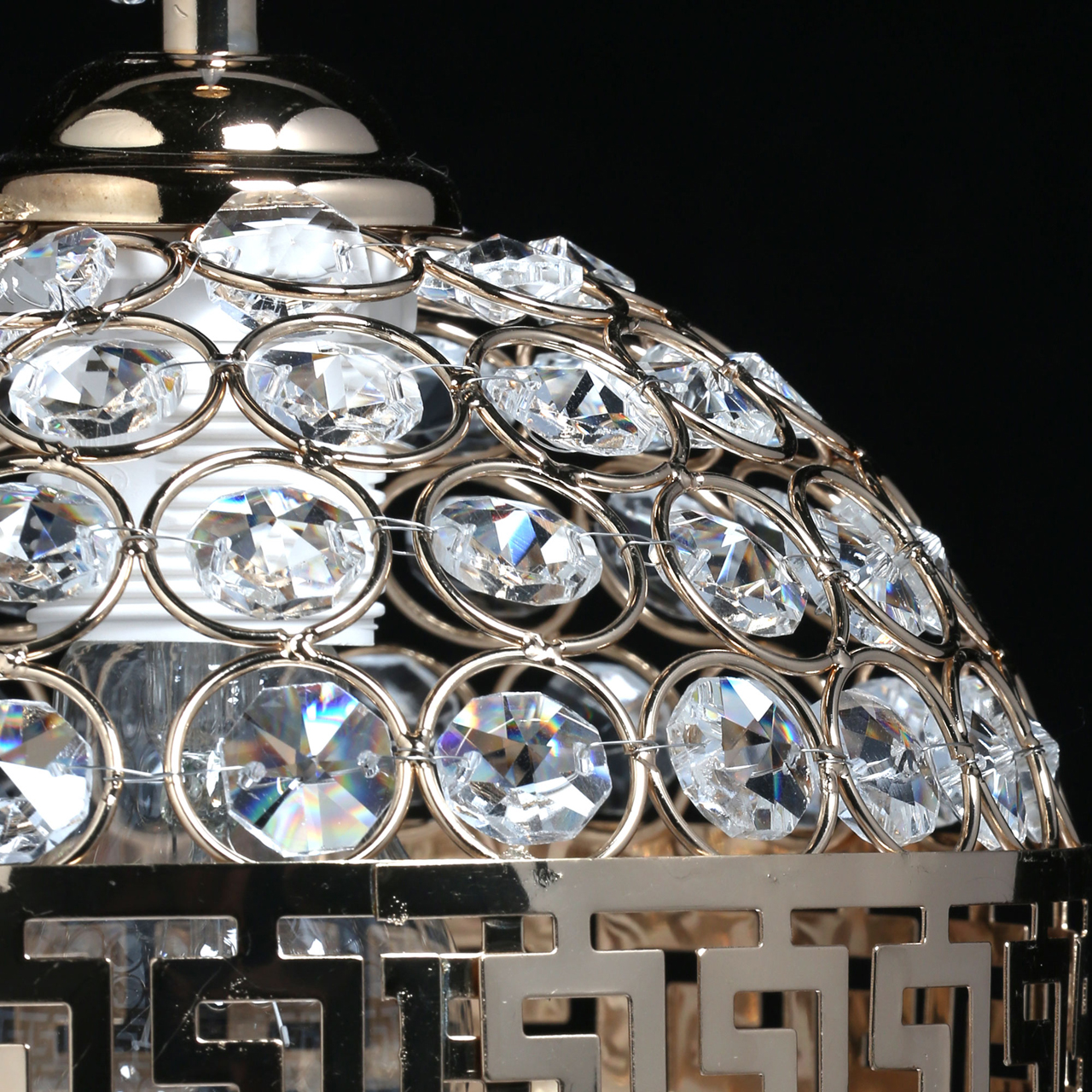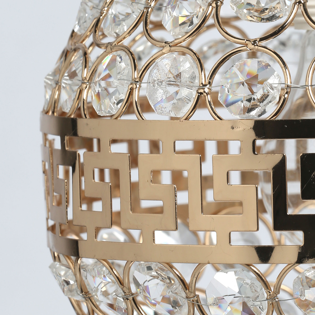 Основание светильника выполнено из металла и гальванизировано в цвет золота. Светильник декорирован классическим орнаментом, выполненным по технологии прессования и прозрачным хрусталем круглой формы.Тип помещения