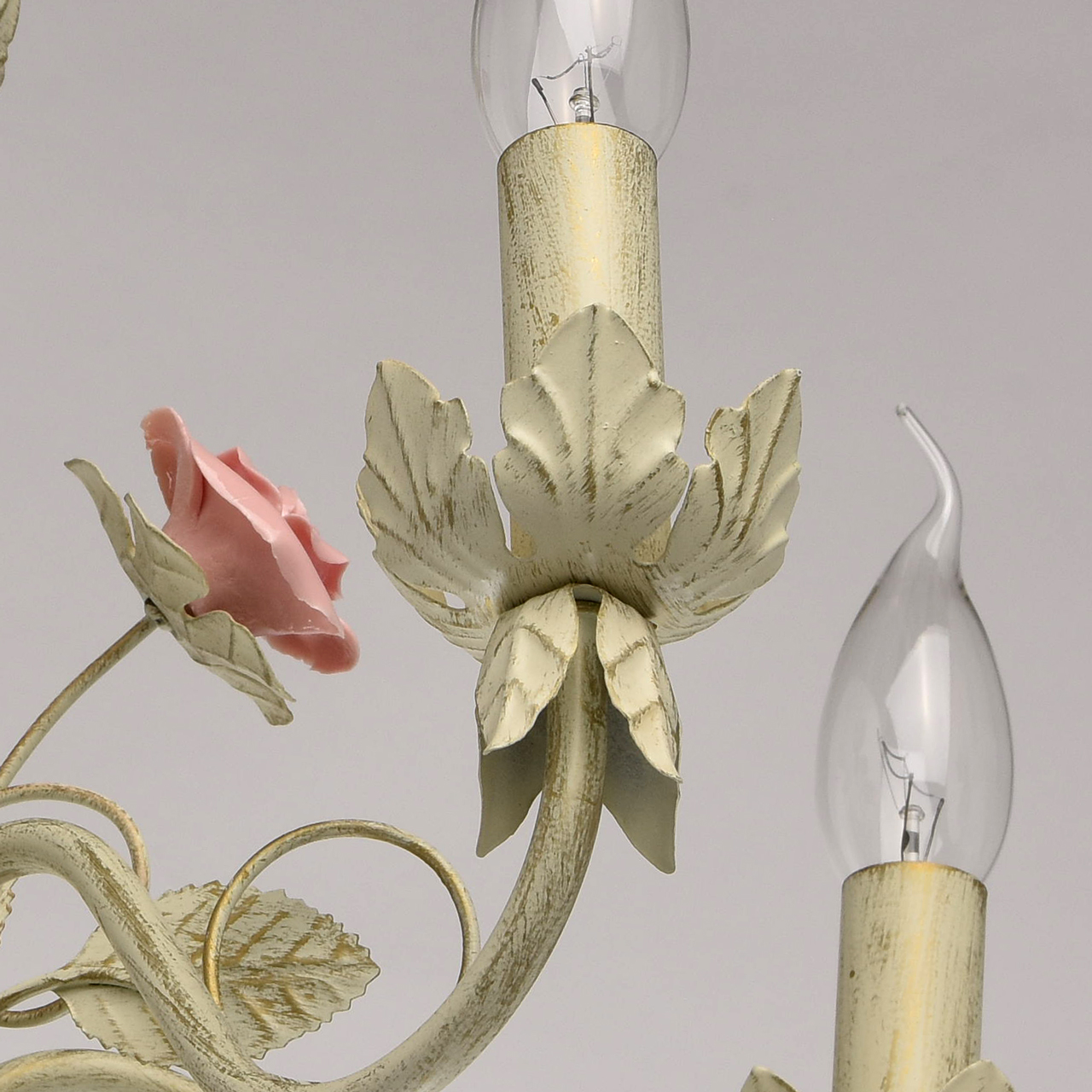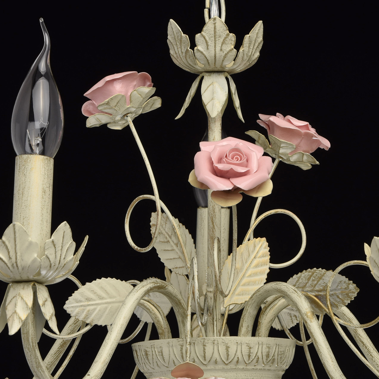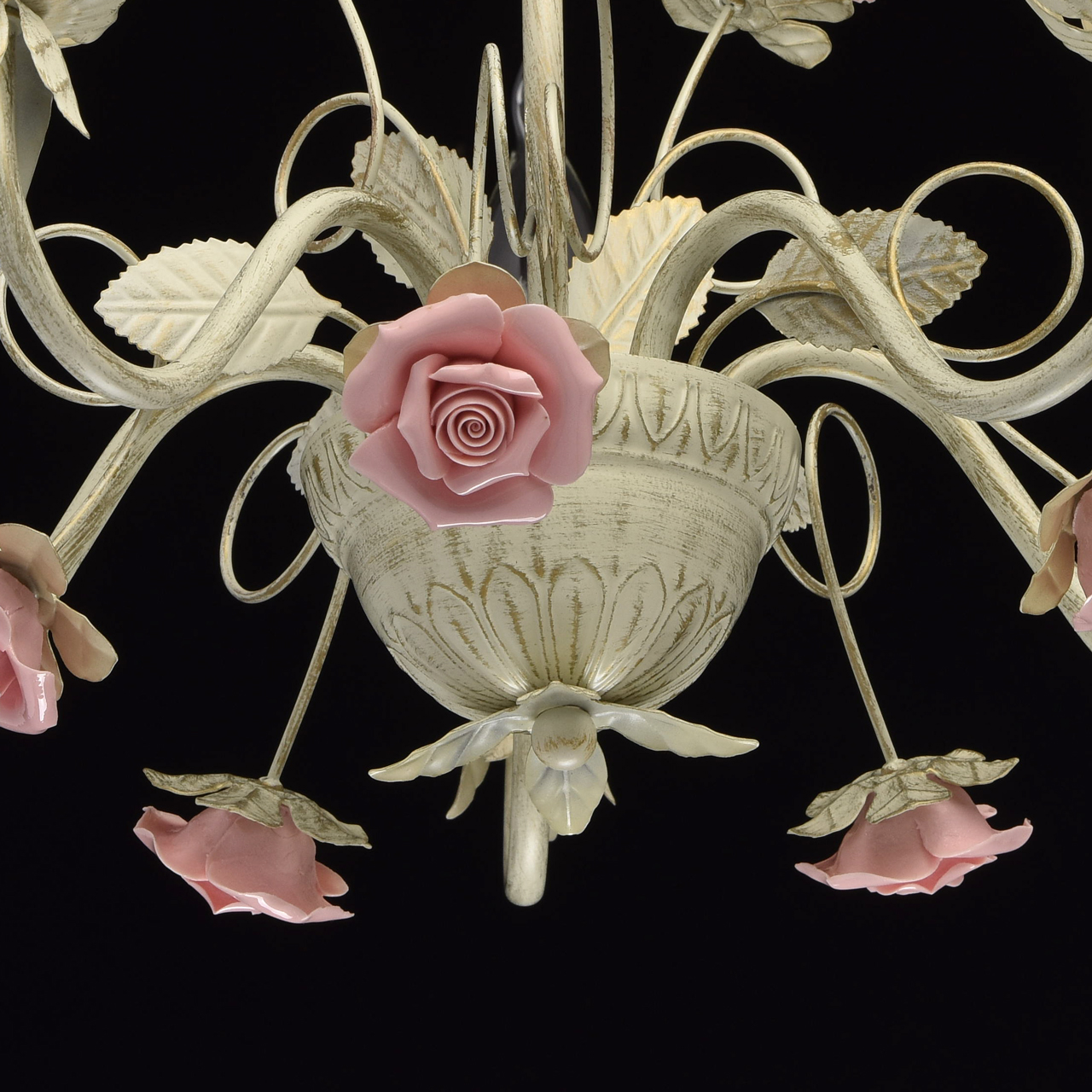Изящная люстра выполнена в нежном флористическом стиле Приятный бежевый цвет с эффектом золотого патинирования позволяет люстре встроиться в большинство интерьеров Традиционная форма свечи создает высокие параметры освещения Нежно розовые фарфоровые розы делают люстру необыкновенно изящной и романтичной Идеальное решение для спальни или гостиной выполненных в стиле Прованс. Широкая семья дает возможность осветить смежные помещения в одном стилеСтилевые решения интерьера