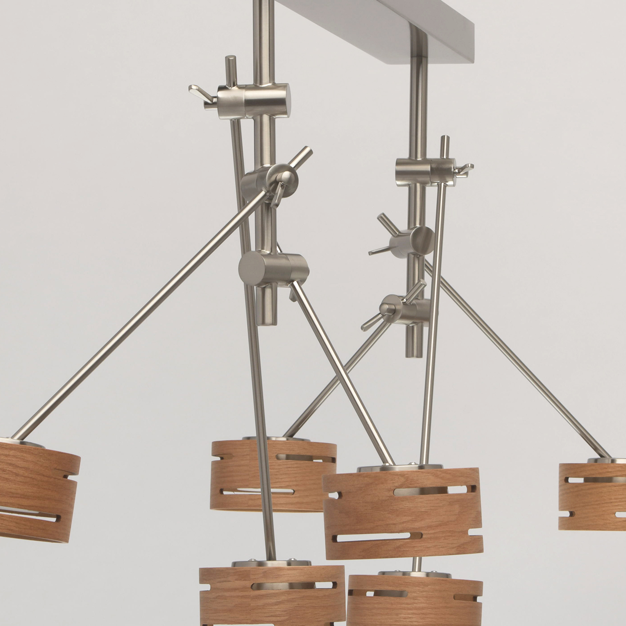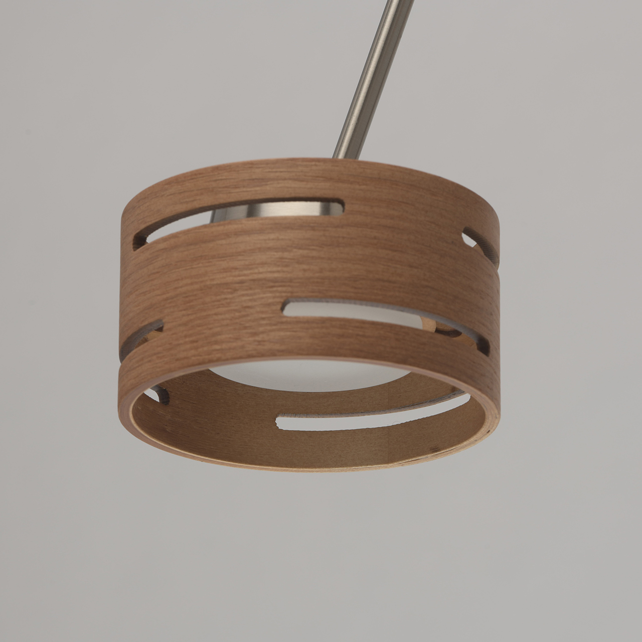 Основание выполнено из металла и гальванизировано в цвет матового никеля. Плафоны выполнены из натурального дерева. Светодиодные источники света типа SMD-board закрыты рассеивателями из матового акрила.Тип помещения