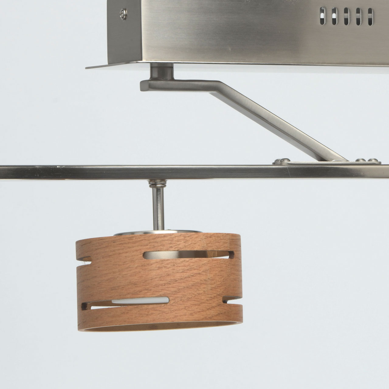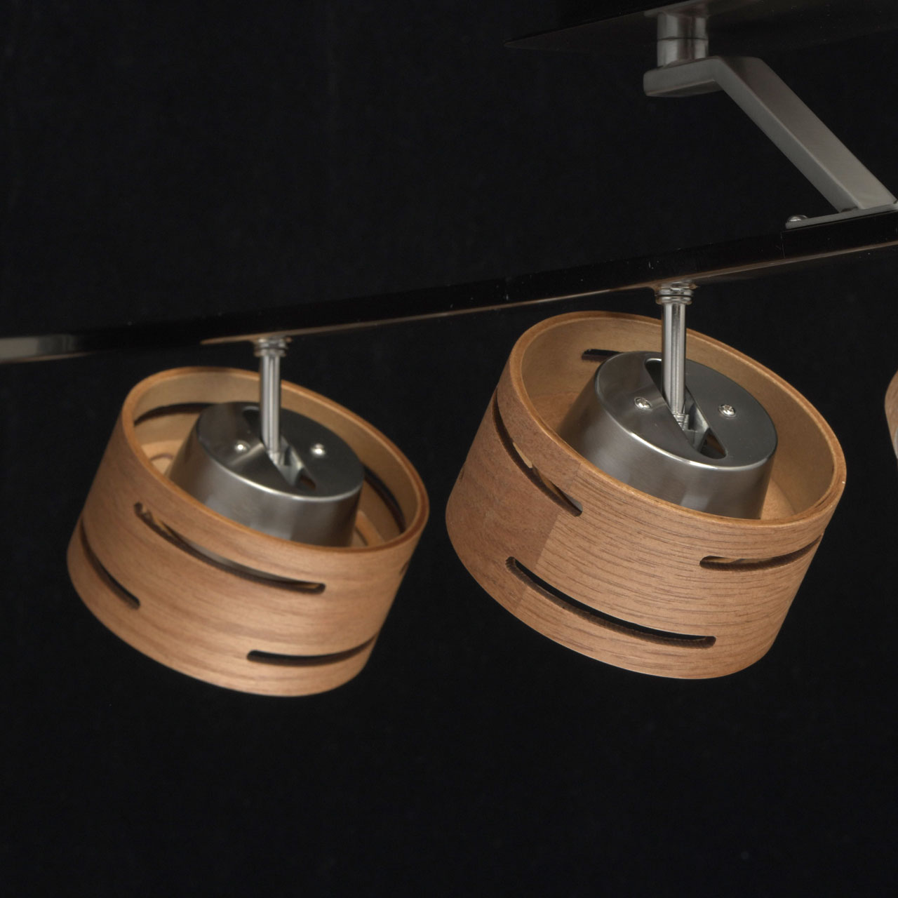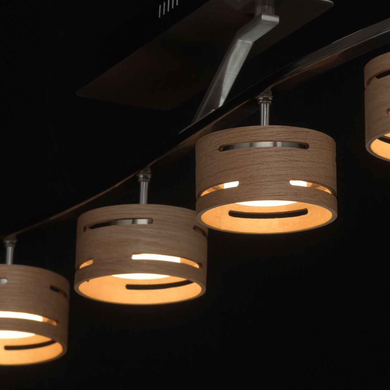 Основание выполнено из металла и гальванизировано в цвет матового никеля. Плафоны выполнены из натурального дерева. Светодиодные источники света типа SMD-board закрыты рассеивателями из матового акрила.Тип помещения