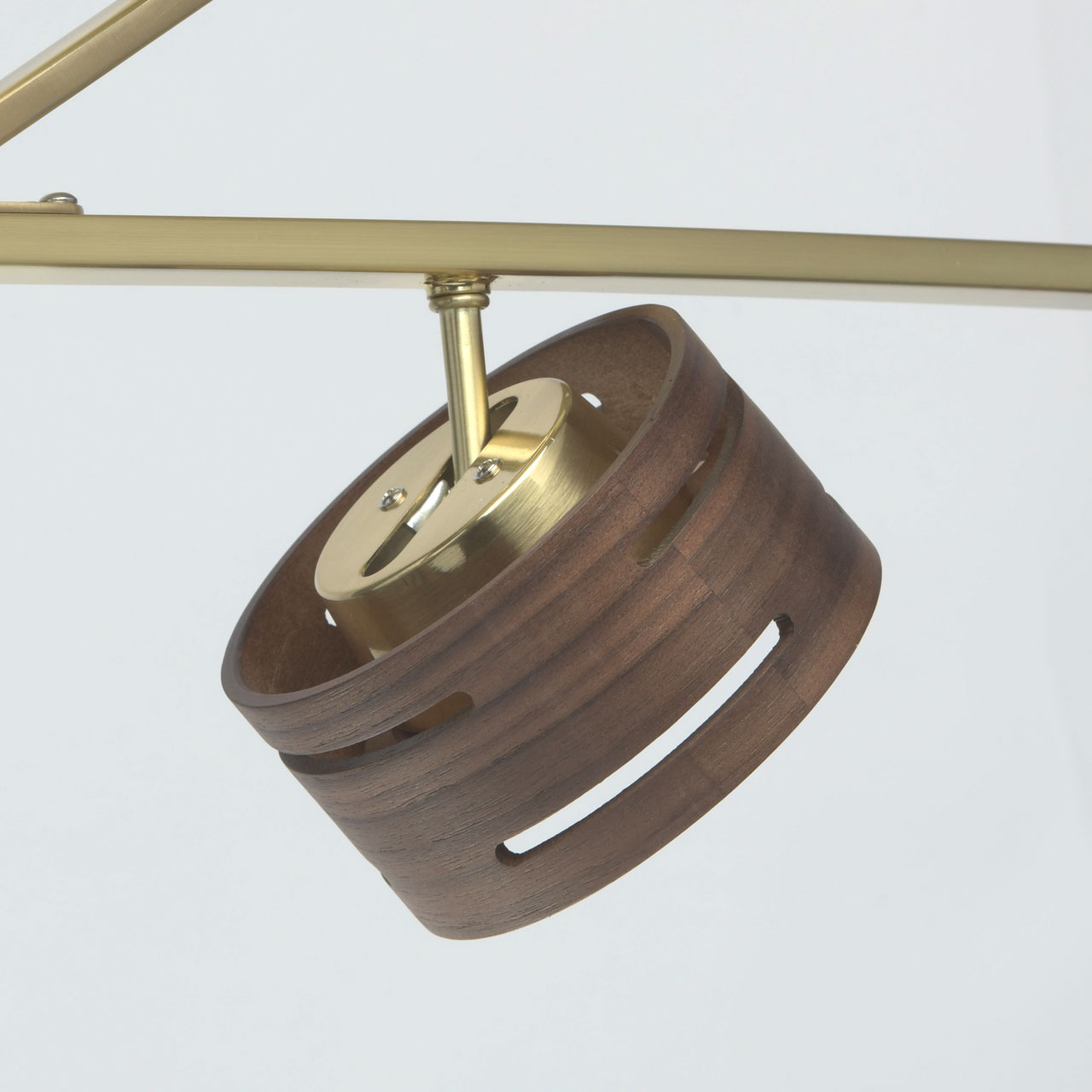 Стильный светильник-трансформер - признанный тренд в мире светодизайна. Металлическое основание модели представлено в двух цветовых вариациях: матового золота и матового никеля. Главная изюминка светильника - оригинальные абажуры из натурального дерева, с графичными прорезями, красиво преломляющими световой поток. Абажуры также выполнены в двух оттенках: светлого и темного дерева. В качестве источников света выступают светодиоды, скрытые под вставкой из матового акрила, мягко рассеивающей свет. Помимо этого, светильник отличается богатым функционалом: его плафоны оснащены спот системой, что позволяет леко менять направление светового потока и самую композицию светильника.Преимущества модели