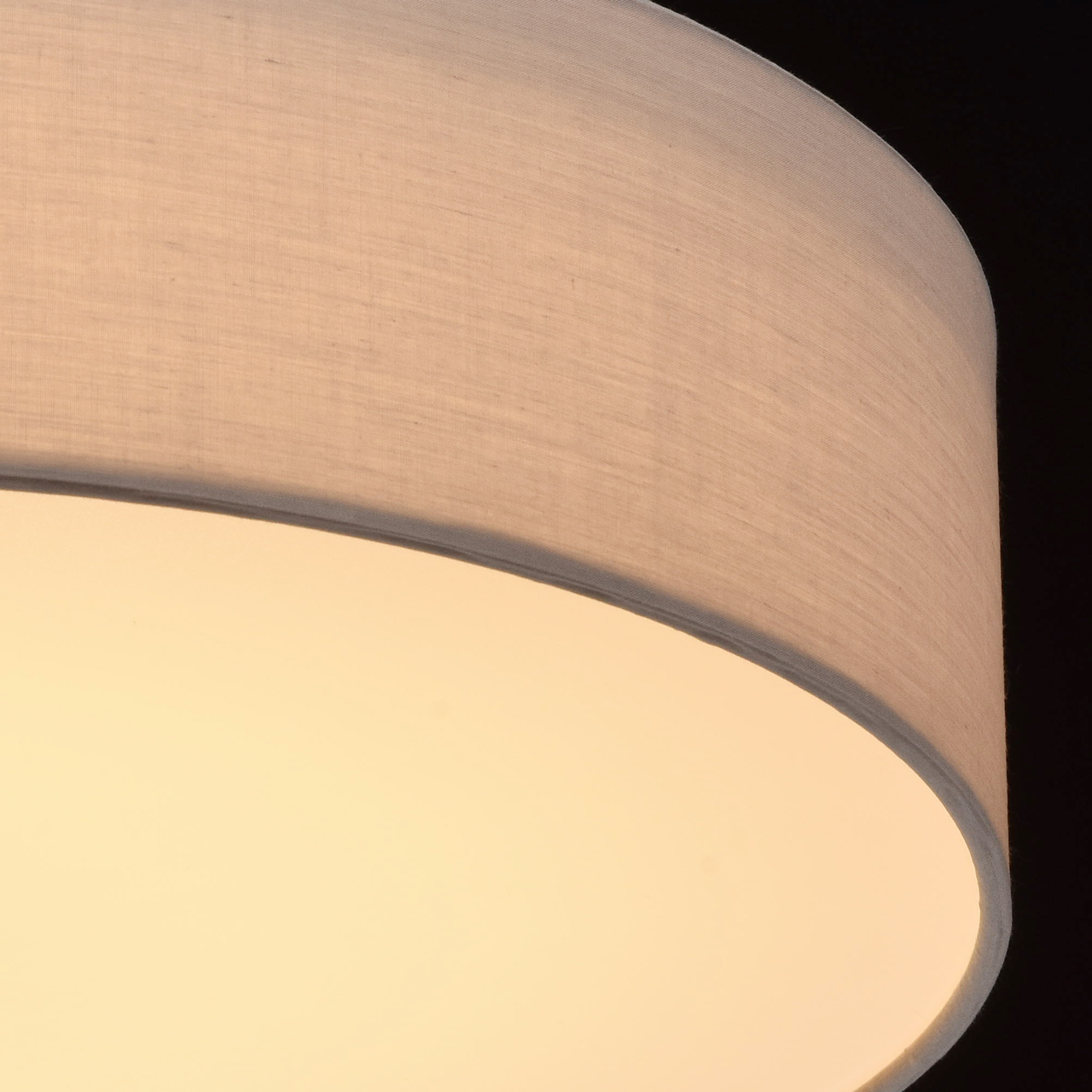 Основание: металл, окрашено в белый цвет. Плафон: текстильный цвета Грейдж обработан специальной пропиткой, облегчающей уход, изнутри покрыт термостойким акрилом. Источники света типа SMD Board закрыты матовым акриловым рассеивателем.Тип помещения