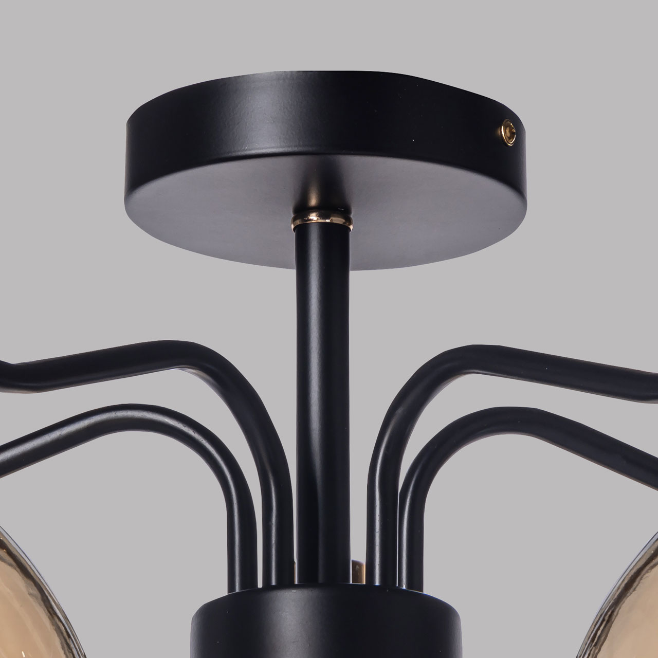 Потолочная люстра на штанге Дэла 635011005 от немецкой фабрики DeMarkt подходит для размещения в гостиной, в кафе, в спальне, на кухне, над обеденным столом, в стиле модерн. Материал изготовления – металл, цвет янтарный. Модель имеет 5 плафонов (стекло). Цоколь 5xE27, световой поток 3225 lm, цветовая температура 2700 К. Мощность 300 W, питание от сети 220 V, cтепень защиты от влаги и пыли IP20. Габариты: высота – 25 см, диаметр – 58 см, крепление на монтажную пластину.Характеристики