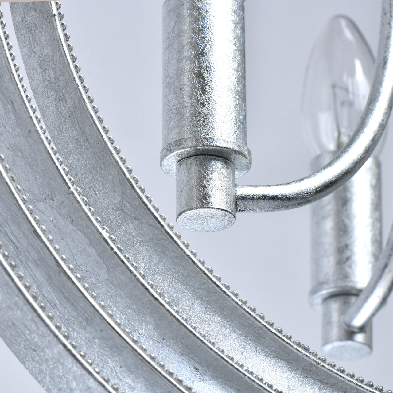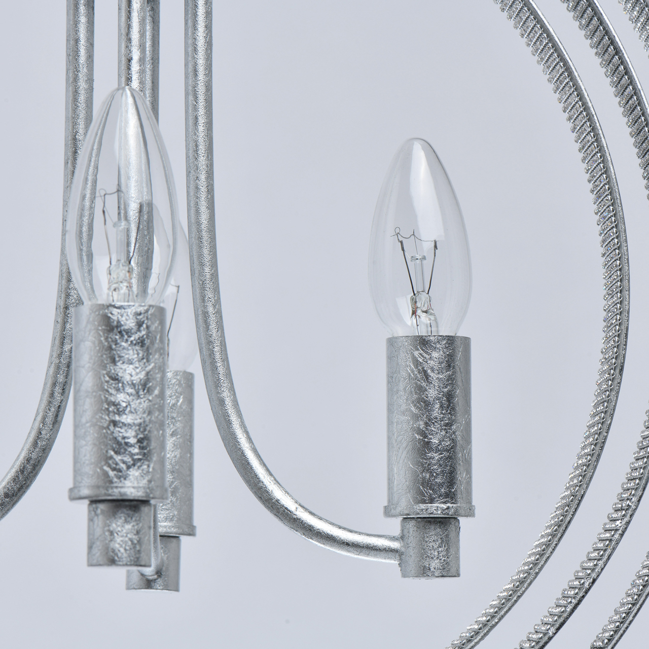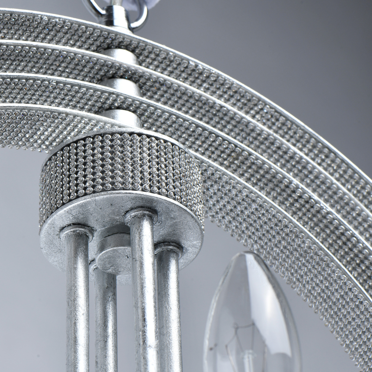 Основание светильника выполнено из металла и покрыто сусальным серебром. Светильник декорирован прозрачными стразами.Тип помещения