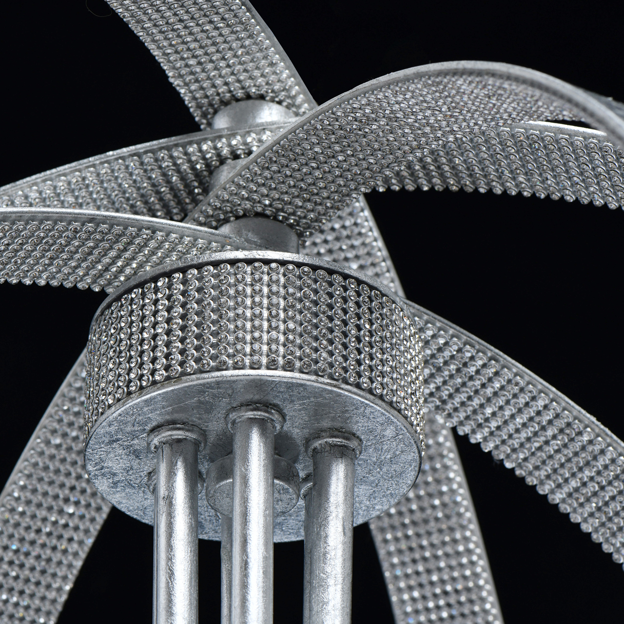 Основание светильника выполнено из металла и покрыто сусальным серебром. Светильник декорирован прозрачными стразами.Тип помещения