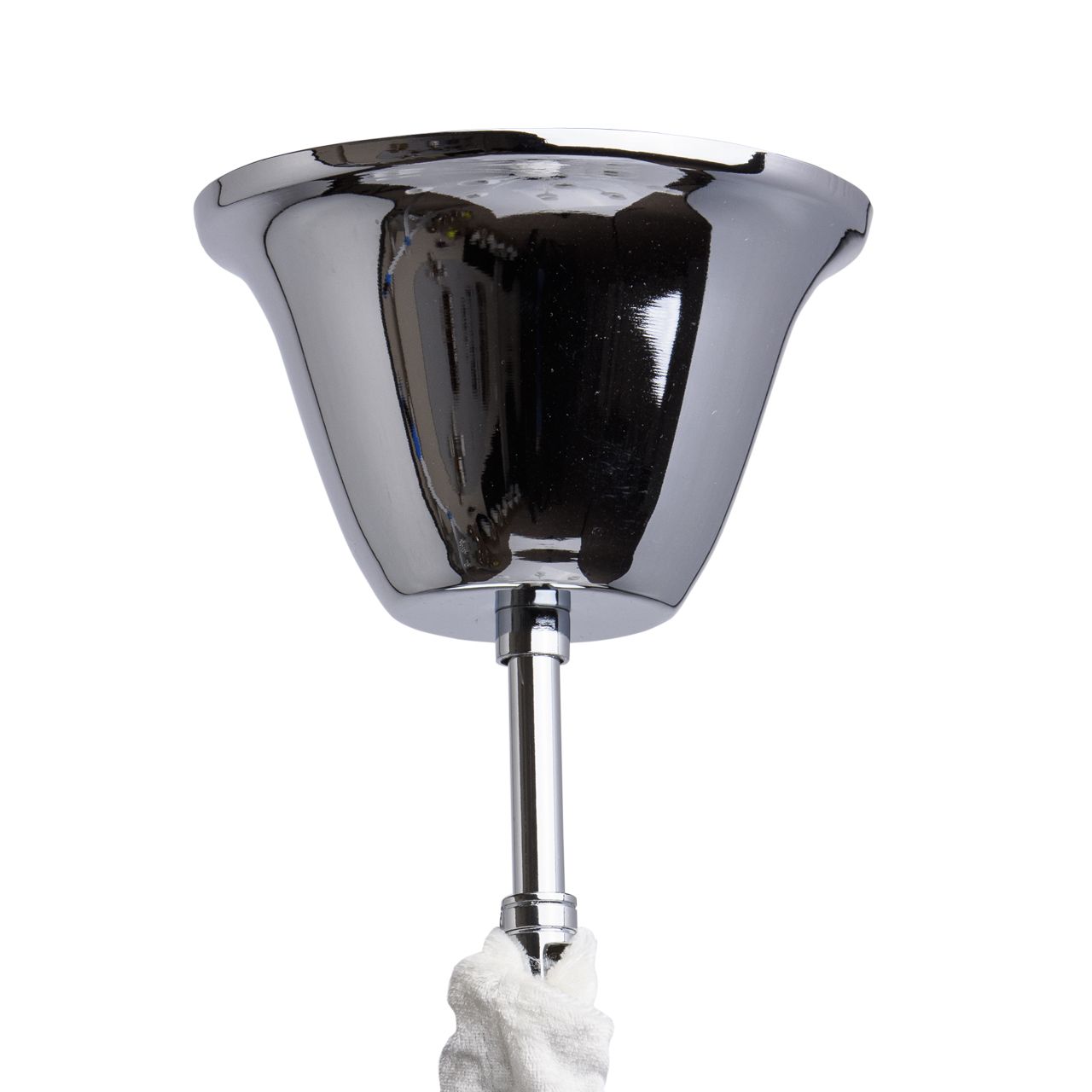 Металлическое основание цвета хрома, декоративные элементы и плафоны из дутого стекла.Технология производства