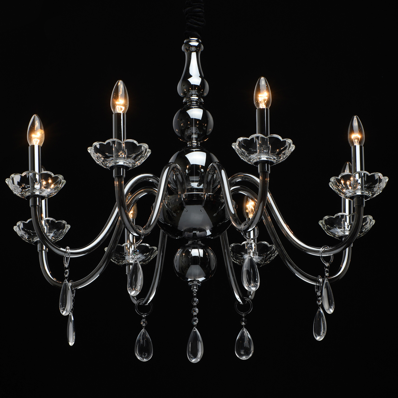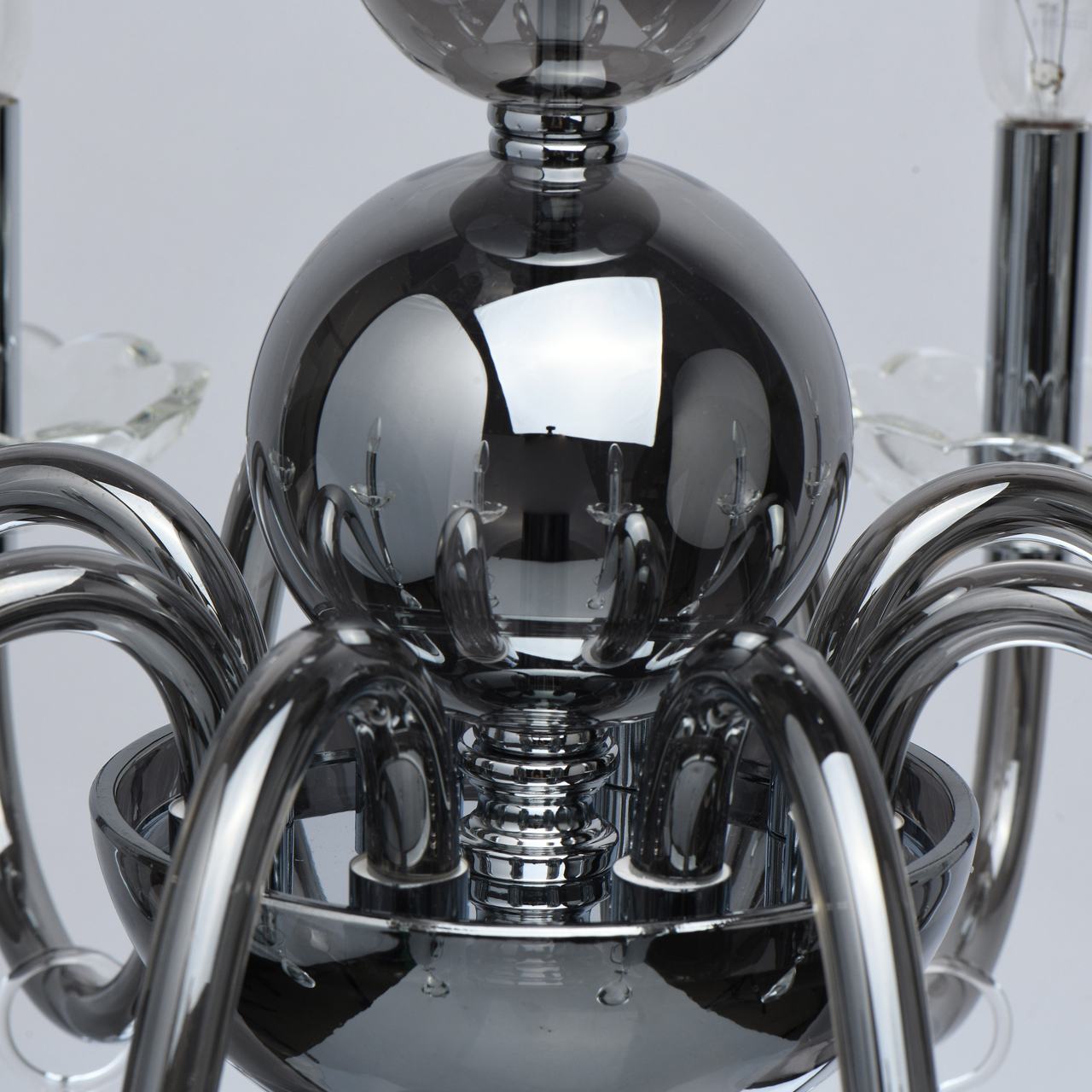 Основание/ металл/ хром Рожки/ стекло/ дымчатое Декор/ хрусталь, стекло/ прозрачныйТехнология производства