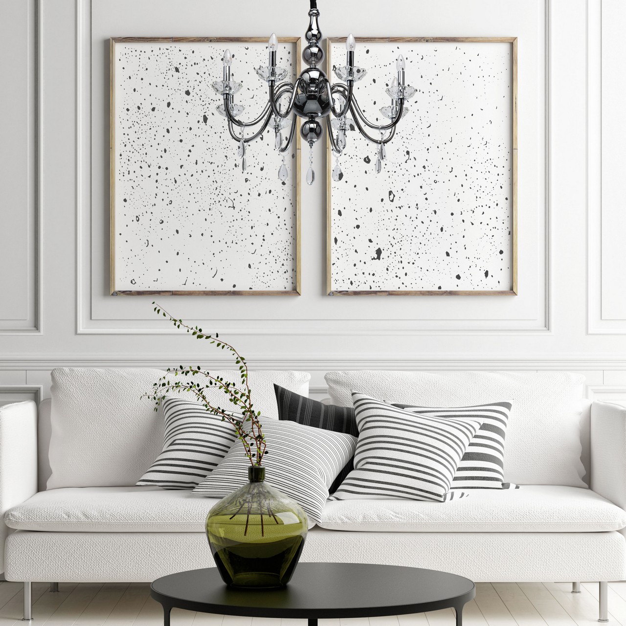 Металлическое основание гальванизировано в цвет хрома и закрыто стеклом ручной работы, гальванизированным в дымчатый цвет. Декоративные розетки отлиты из прозрачного стекла в сложную форму. Светильник декорирован прозрачным хрусталем формы октагон и стеклом формы миндаля.Тип помещения