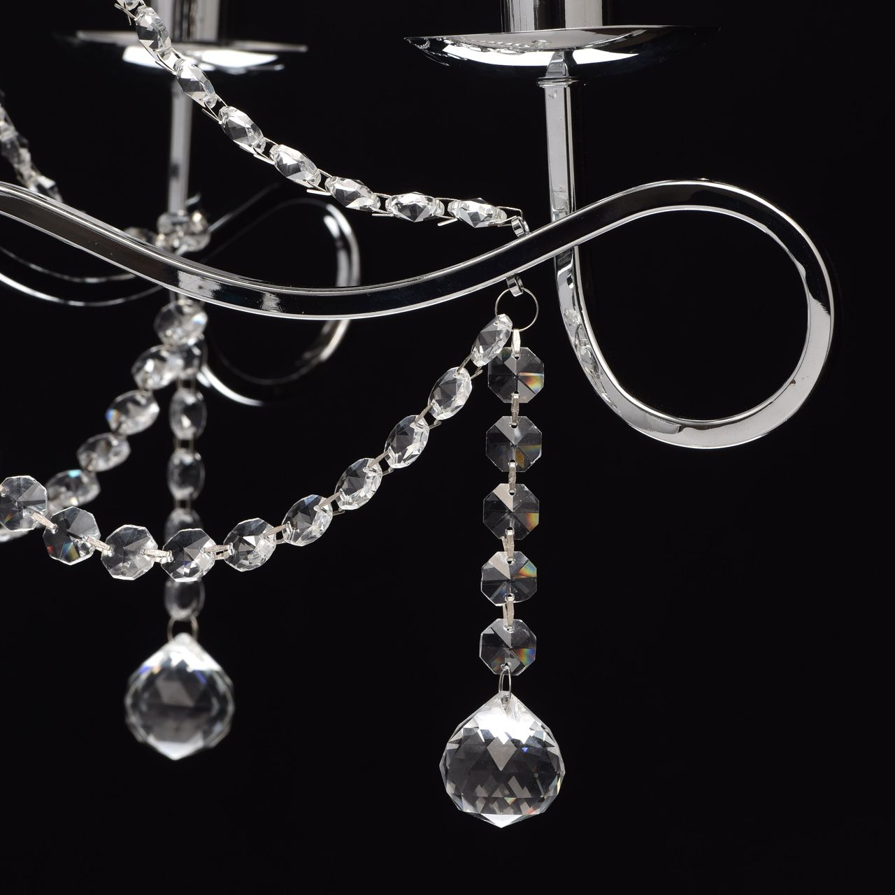 Металлическое основание цвета хрома. Плафоны: парча серебрянного цвета. Декор - хрустальТехнология производства