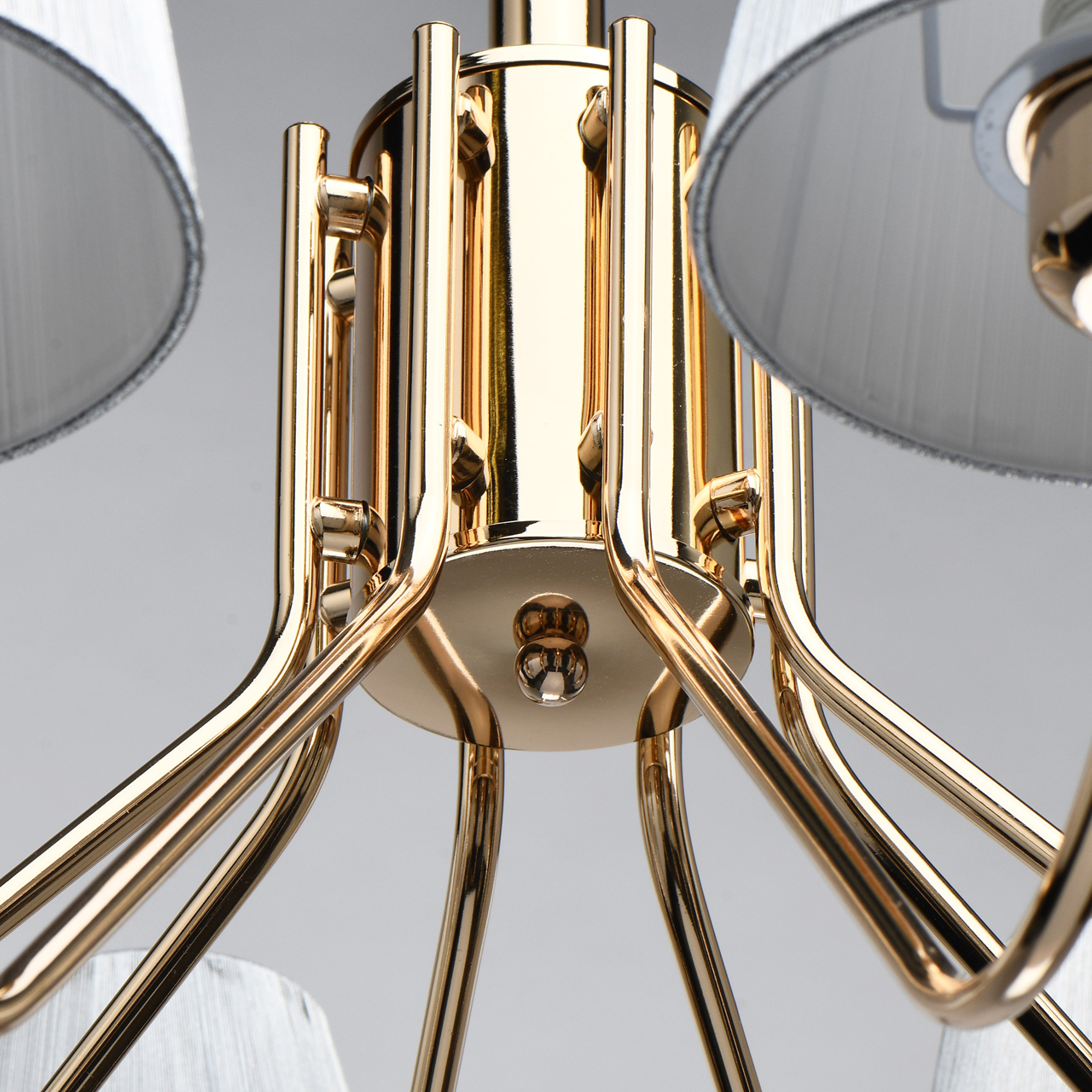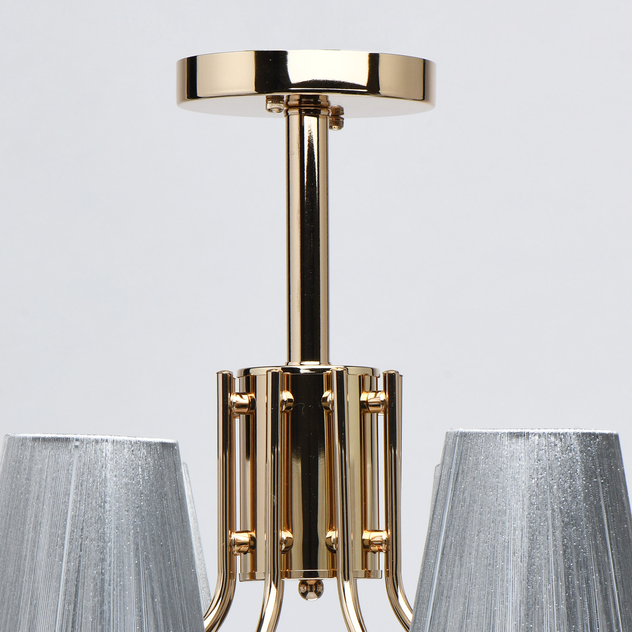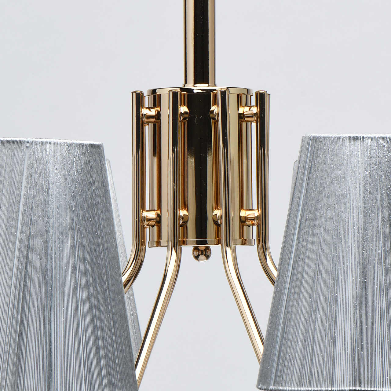Оригинальное сочетание основания цвета золота и абажуров цвета серебра. Абажур увеличен в высоту, создает современный облик освещения. Широкий диаметр обеспечивает высокие параметры освещения. Компактная высота для стандартных помещений.Стилевые решения интерьера