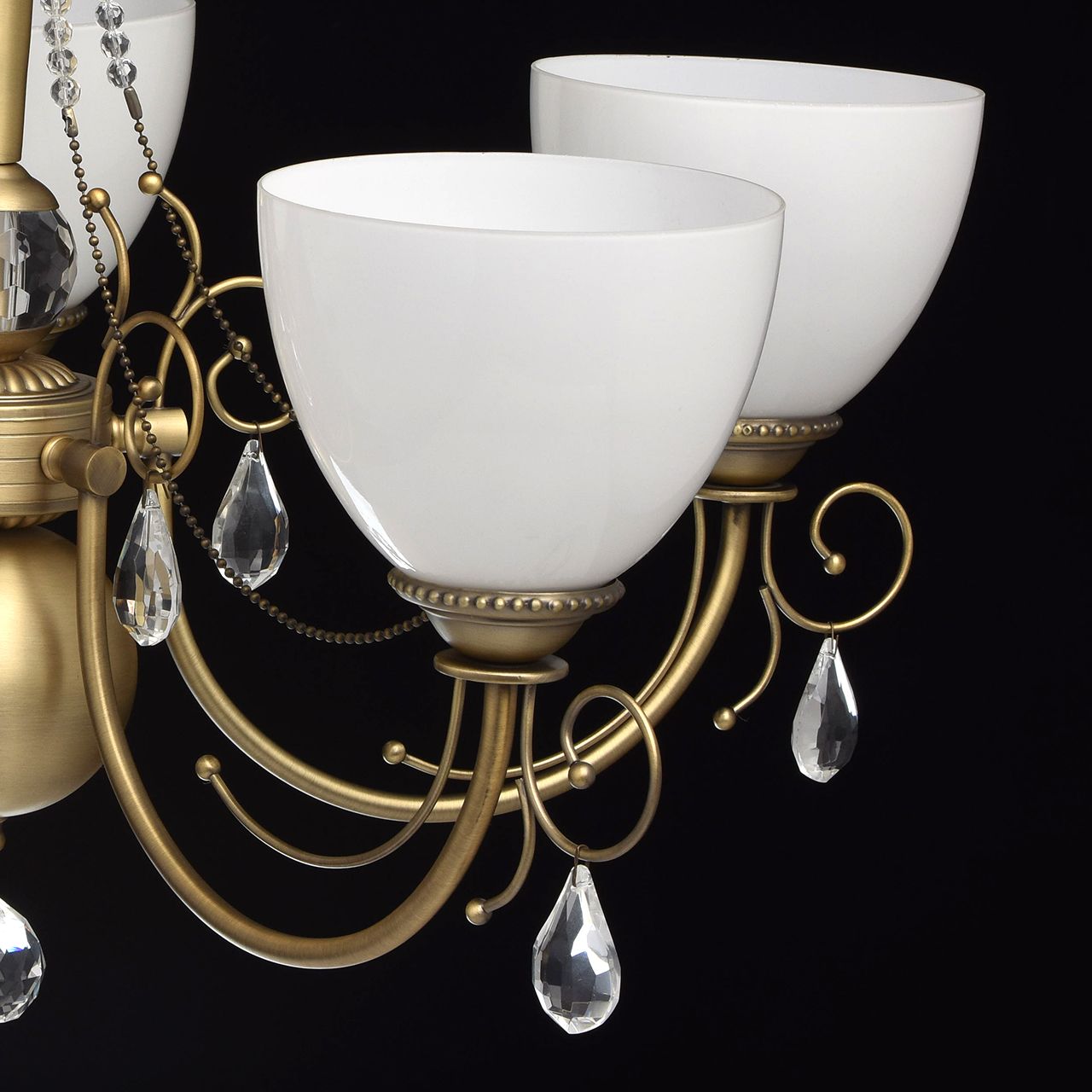 Роскошная форма светильника Фелиция демонстрирует торжественность и статусность классического стиля. Глянцевые белые стеклянные плафоны и подвески из прозрачного хрусталя выигрышно сморятся на фоне бронзовой поверхности металлического основания. Цвет арматуры подчеркивает ценность всего объекта. Коллекция Фелиция - это достояние классики в световом исполнении!Преимущества модели