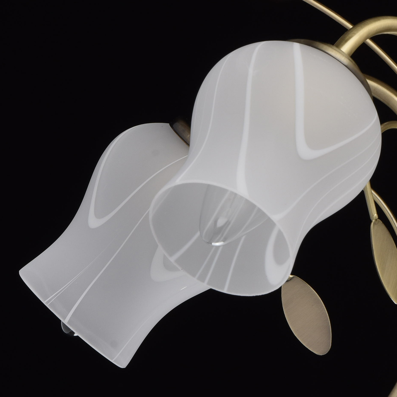 Основание светильника выполнено из металла и гальванизировано в цвет античной бронзы, лакировано. Потолочная чаша, корпус и держатели плафонов изготовлены по технологии обработки на токарном станке. Рожки и завитки изогнуты по технологии проката на роликовом станке. Декоративные элементы в виде листьев выполнены по технологии прессования. Светильник декорирован стеклянными плафонами, отлитыми в форму. Плафоны матированы, узор белой краской нанесен по внешней поверхности.Тип помещения