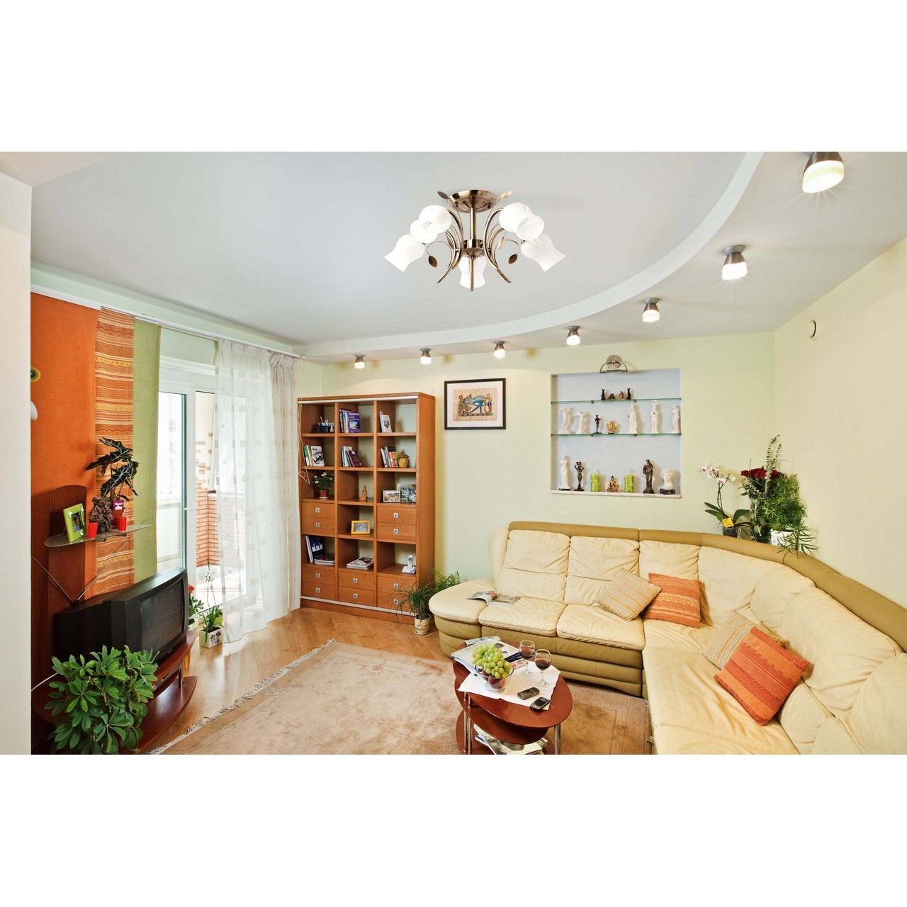 Современный дизайн в флористическом стиле. Благородный оттенок основания. Высокие парамерты освещенности. Идеальна для стандартных потолков.Стилевые решения интерьера