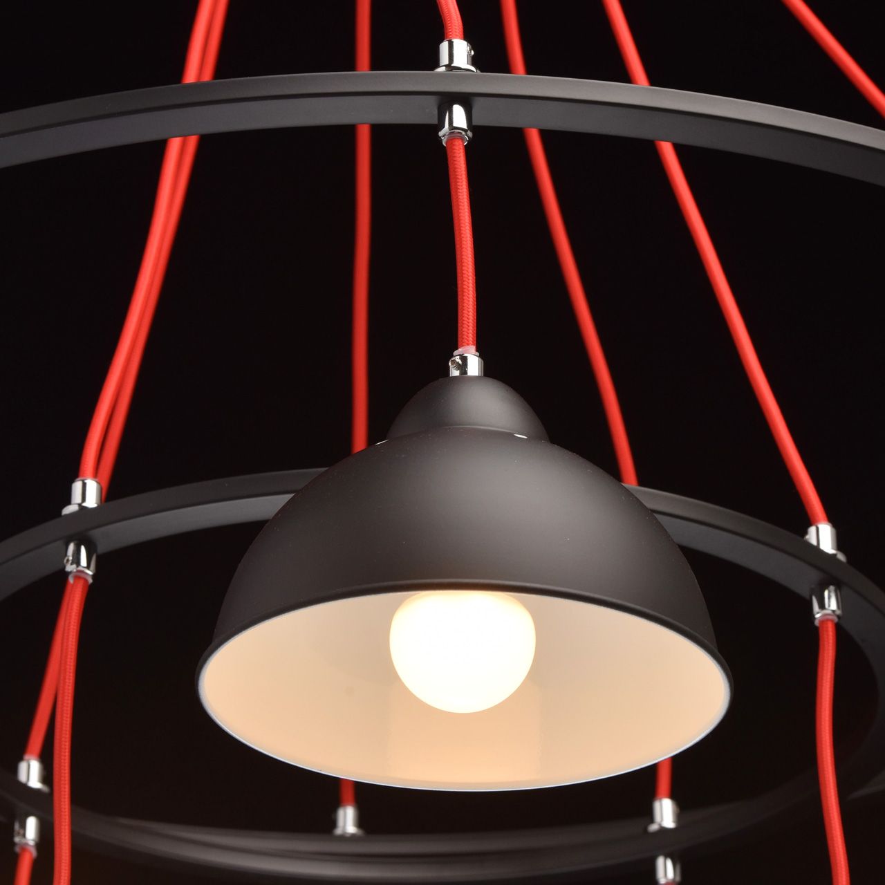 Дизайн светильника выполнен в актуальном стиле лофт. Универсальный черный цвет и минималистичный конструктив модели на пике моды. Контрастный красный цвет шнуров придает светильнику оригинальность Обращенные вниз плафоны обеспечивают яркое зональное освещениеСтилевые решения интерьера
