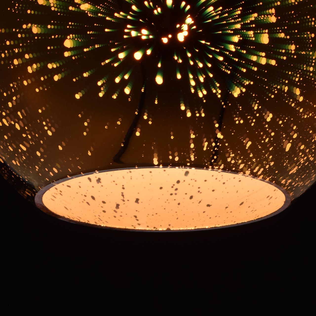 Металлическое основание гальванизировано в цвет золота. Плафон из стекла c голографическим эффектом, имеет многослойное покрытие изнутри в цвет золота.Тип помещения