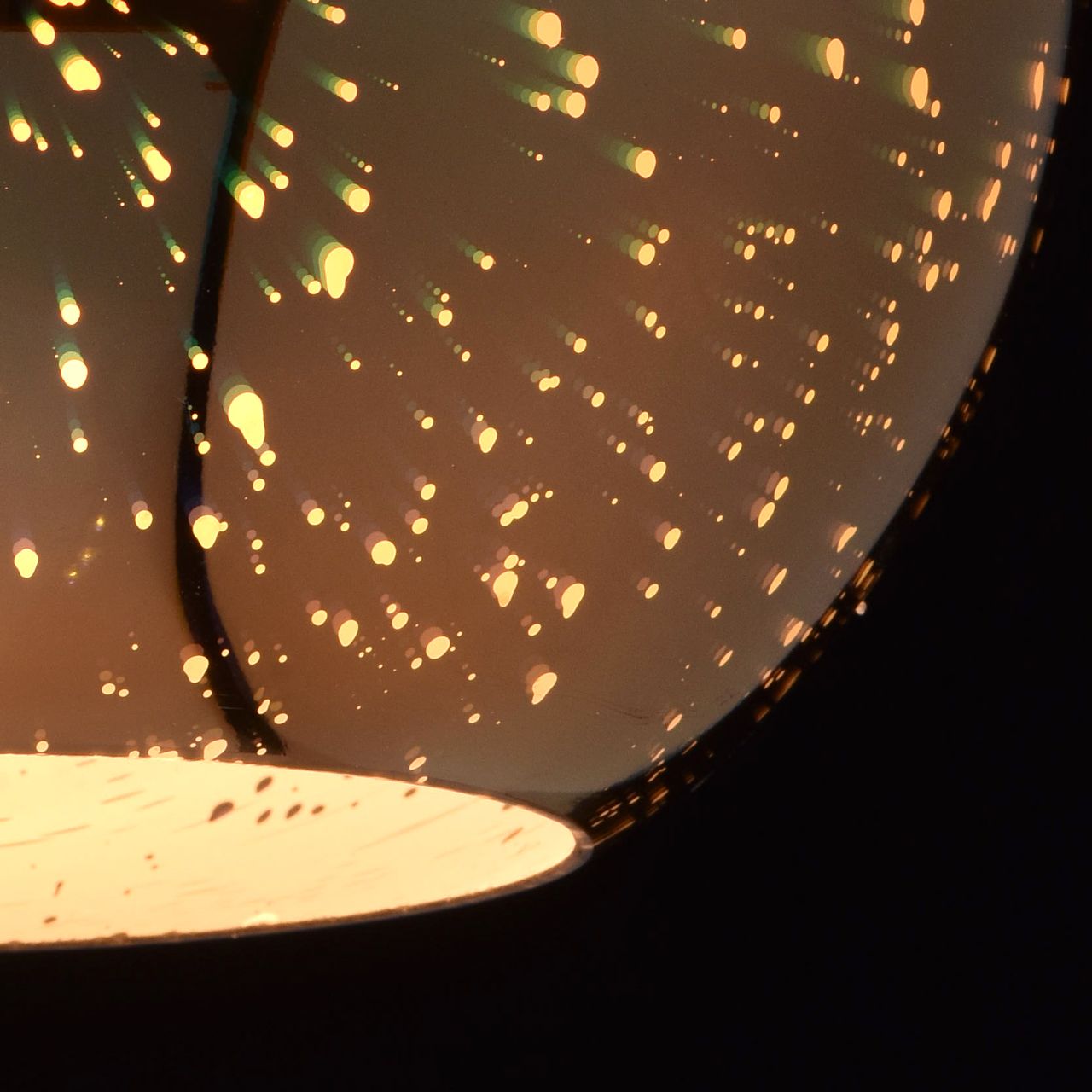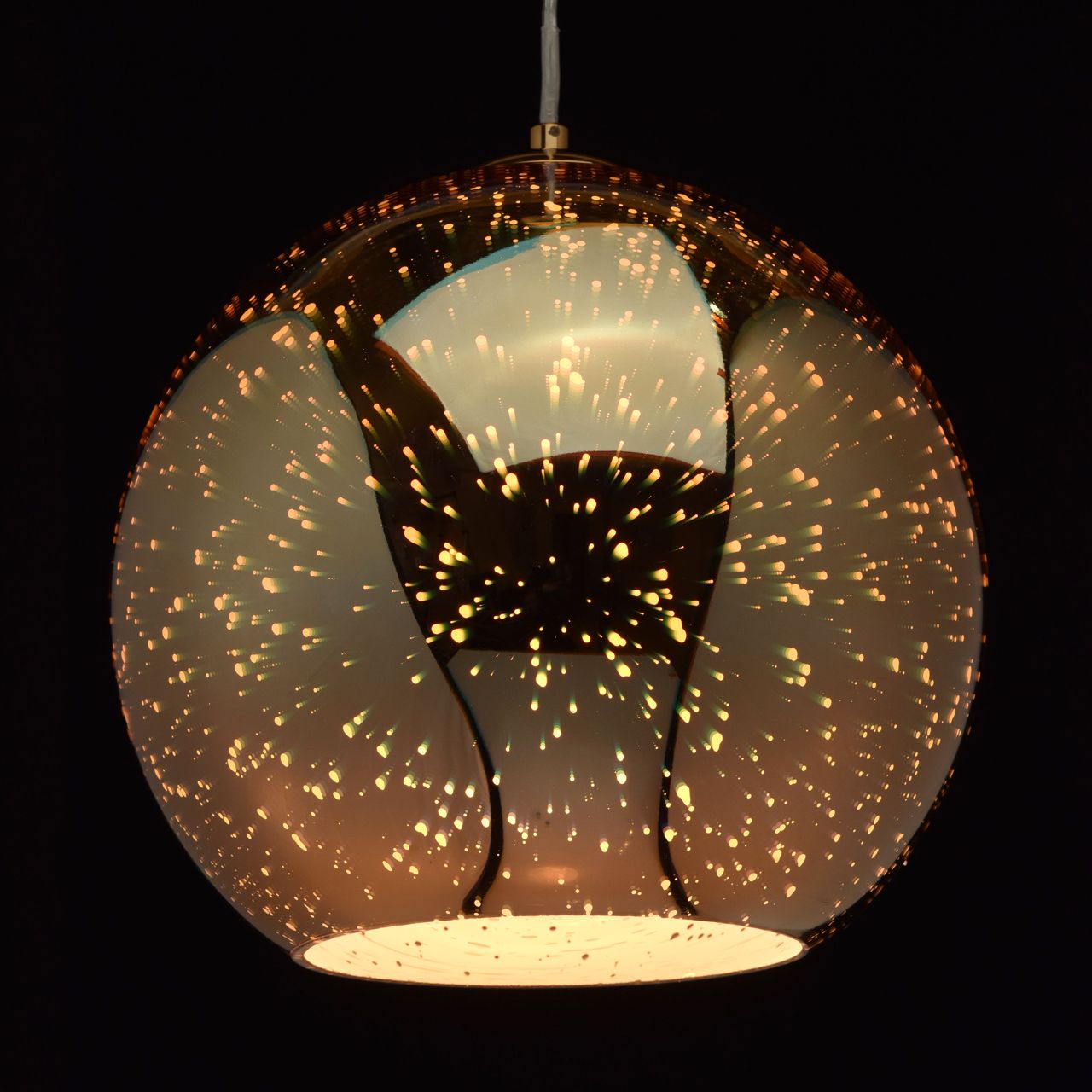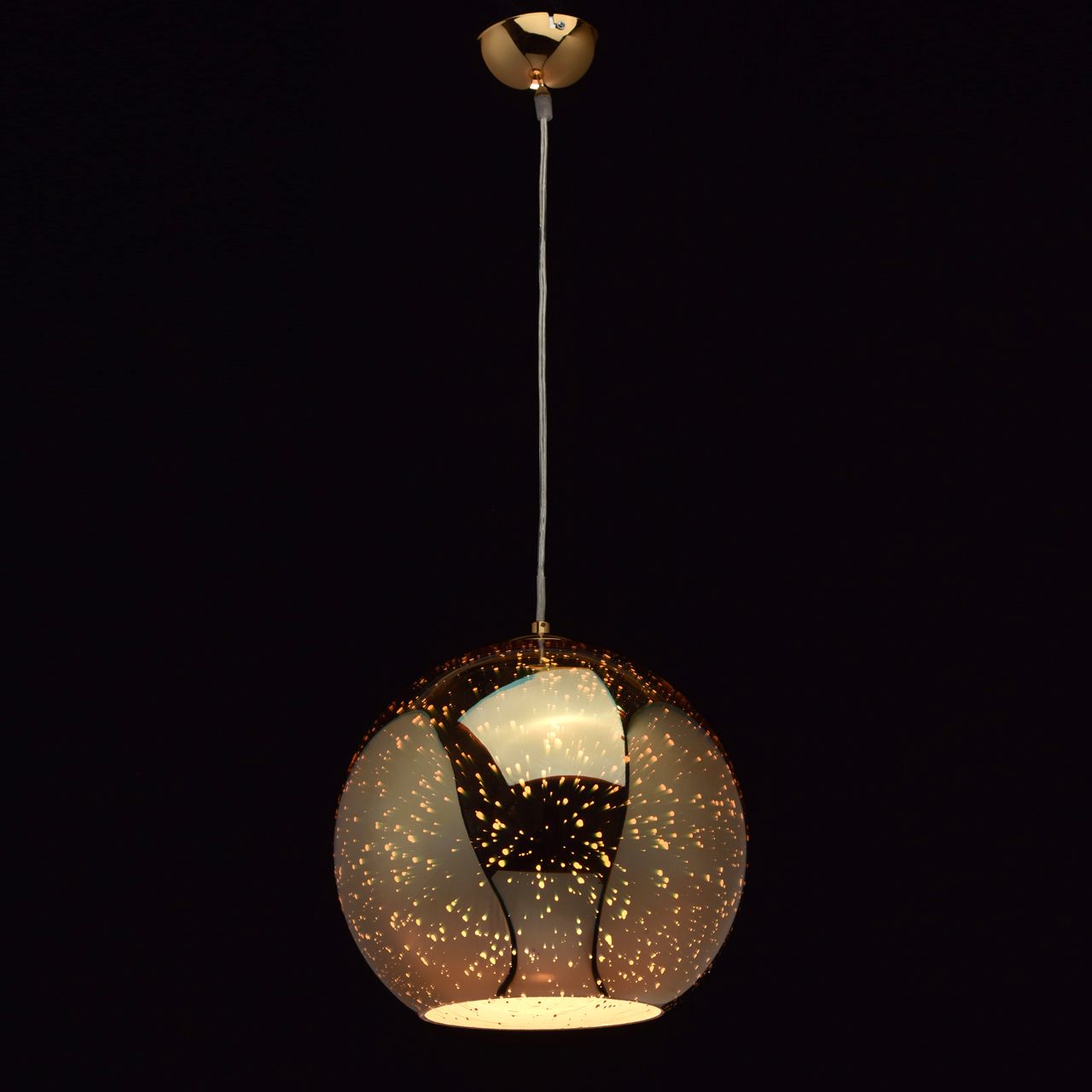 Ультрасовременный модный дизайн Есть возможность регулировать высоту подвеса, меняя на свое усмотрение, положение светильника по отношению к потолку. Необыкновенный 3D рисунок на плафоне создает удивительный эффект звездного неба. Светильник выполнен в 2-х цветах: золото и хром, что позволяет разместить его в разных цветовых решениях интерьера. Несколько размеров светильника позволяют создавать интересные дизайнерские композиции.Стилевые решения интерьера