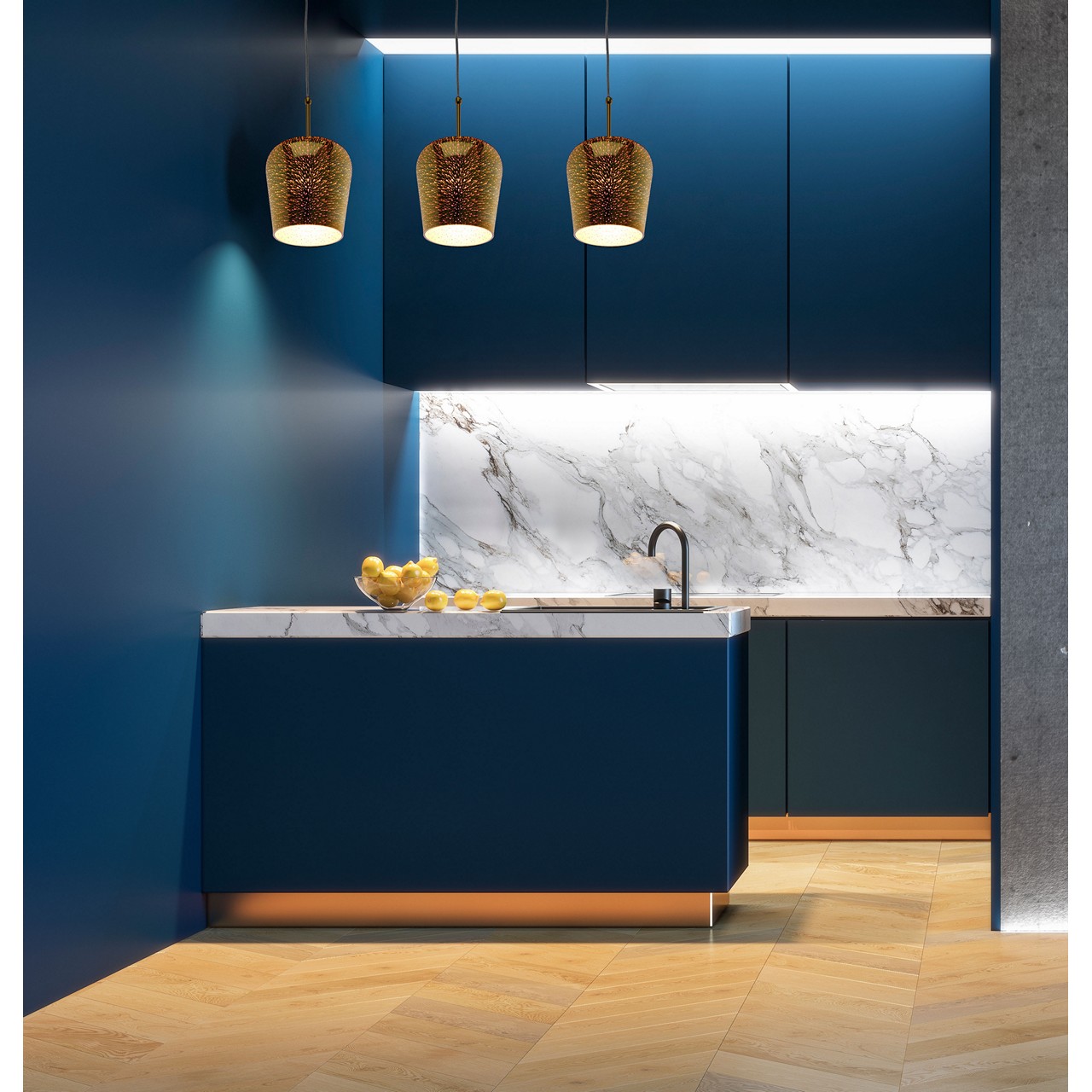 Атмосферное освещение с 3D эффектом плафона. Плафон преображается при включении из лаконичного цвета бронзы в неподражаемую трехмерную игру света на стенах и потолке. Популярный цвет бронзы основания добавит акцента в любой интерьер Увеличенная длина подвеса 2 м удобна для зональной подсветки.Стилевые решения интерьера
