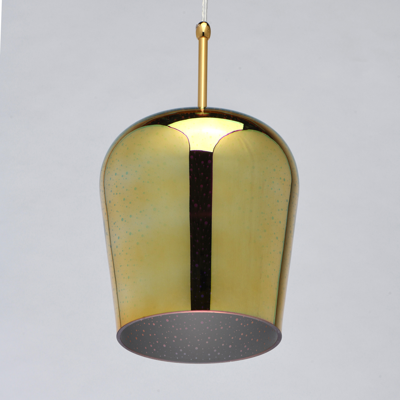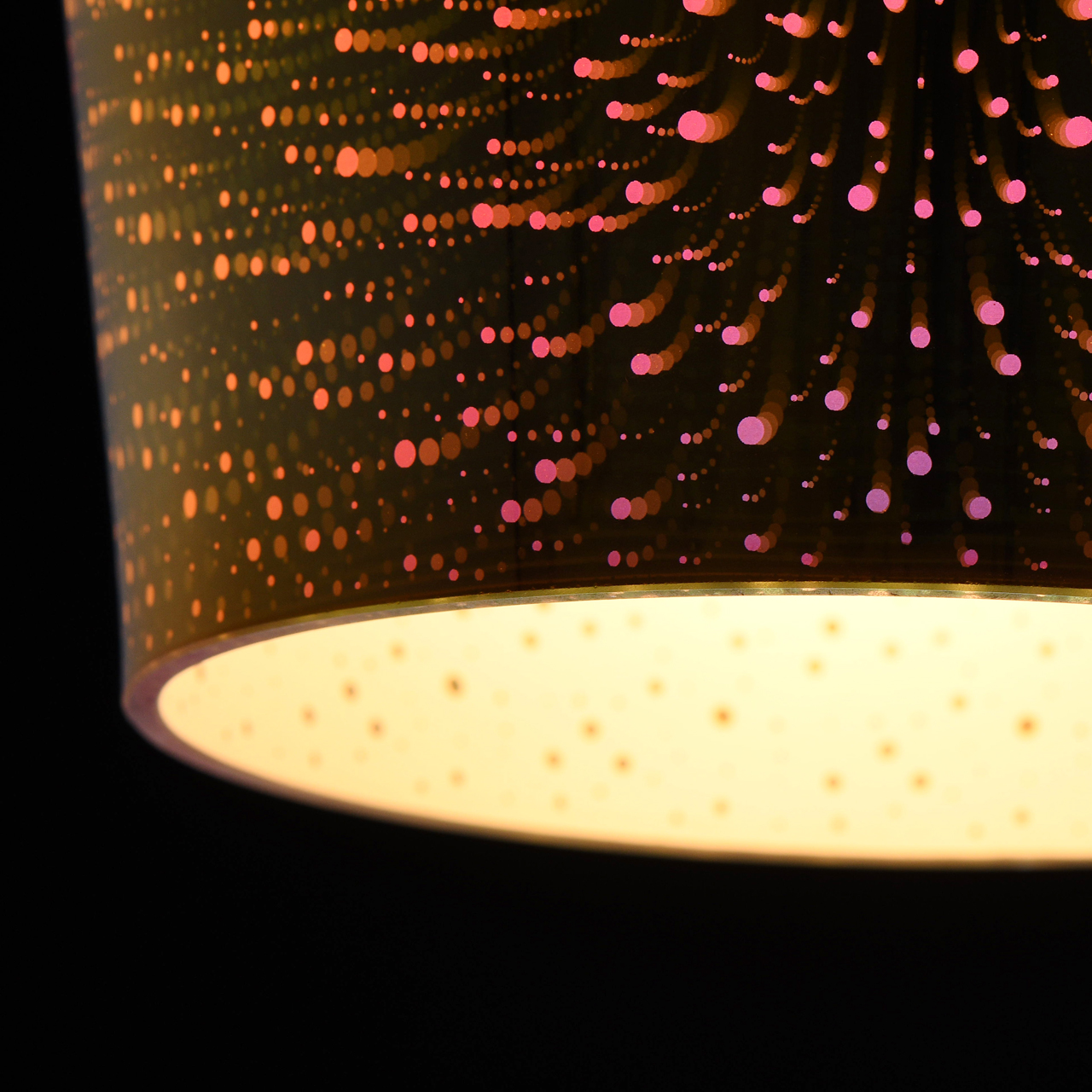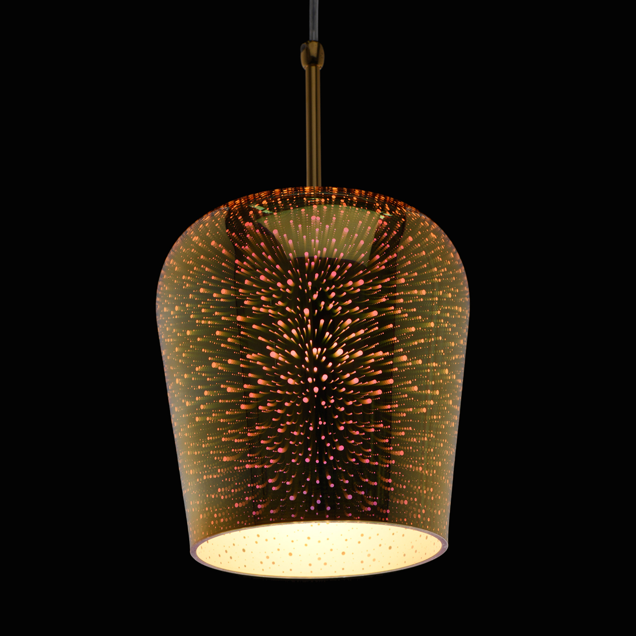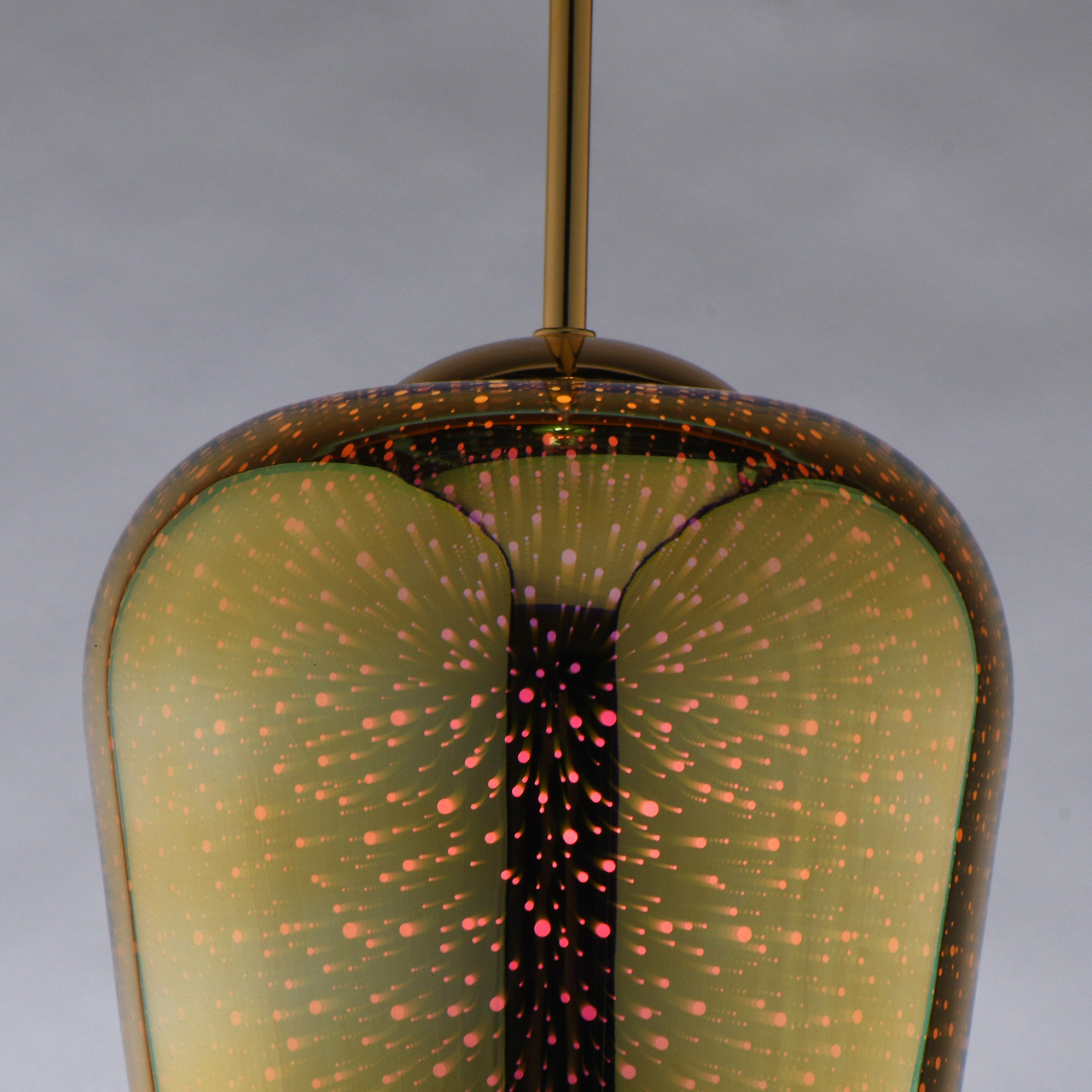Потолочная чаша выполнена из металла и гальванизирована в цвет золота. Плафон из стекла c голографическим эффектом, имеет многослойное покрытие изнутри в цвет золота.Тип помещения