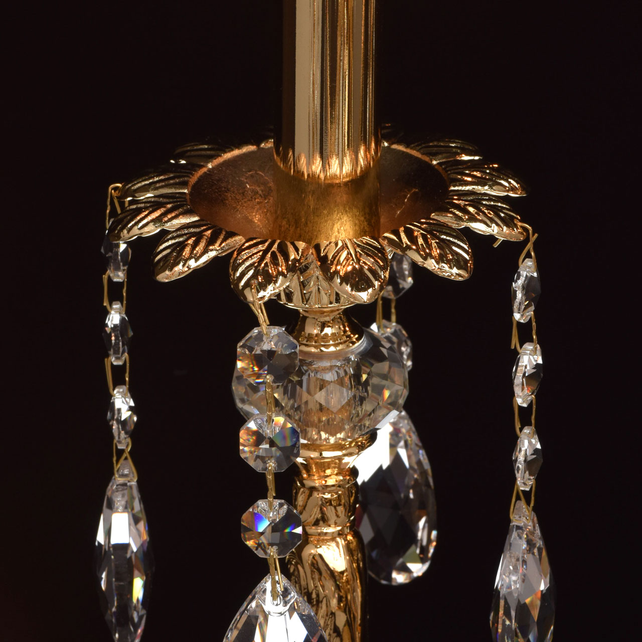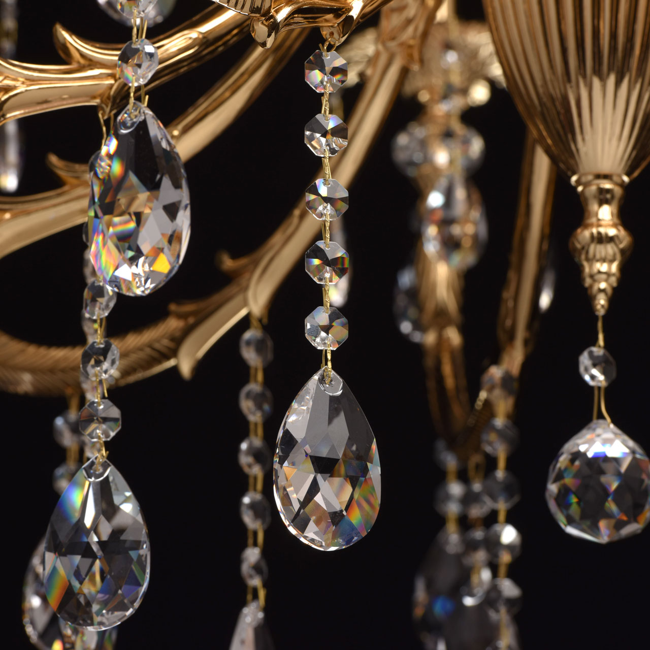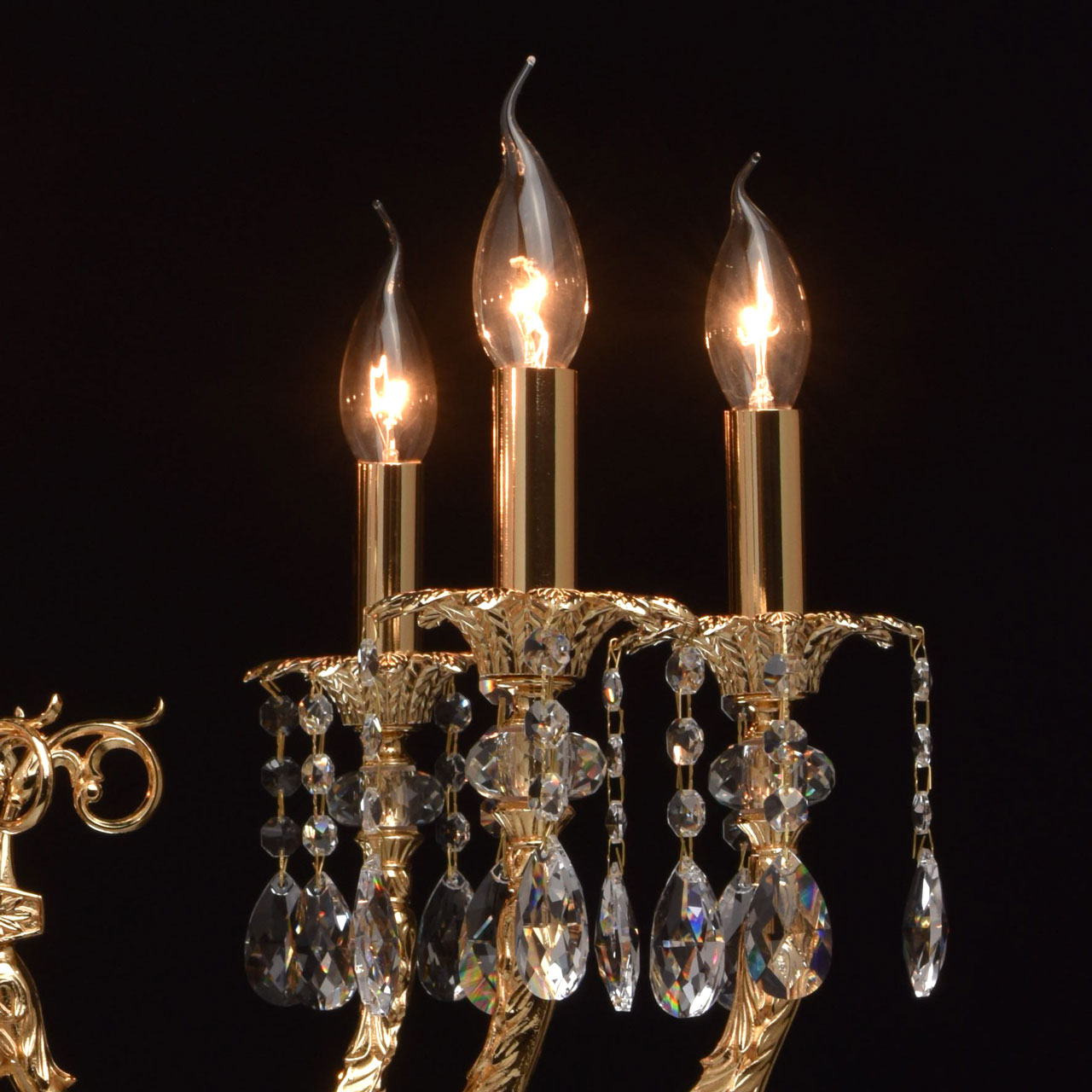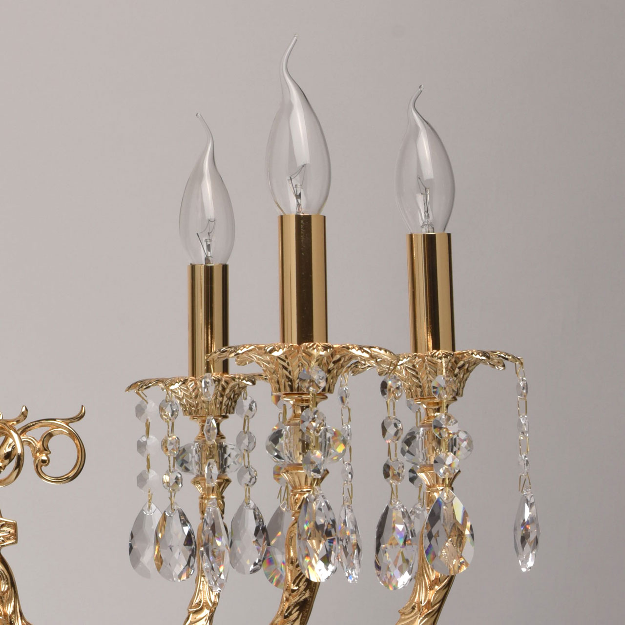 Основание: выполненo из латуни и гальванизировано в 4 слоя в цвет чистого золота (1 слой - цвет бронзы дважды, 2 слой - цвет никеля, 3 слой - цвет серебра, 4 слой - цвет золота и запекается в печи при температуре 180 градусов). Рожки выполнены по технологии художественного литья. Декоративные розетки выполнены из латуни и гальванизированф в цвет основания по технологии прессования. Декор: декоративные розетки декорированы массивом хрусталя. Светильник декорирован прозрачным свинцовосодержащим хрусталем ТМ Asfour с содержанием оксида свинца 29%, формы октагон, миндаль и шар.Тип помещения