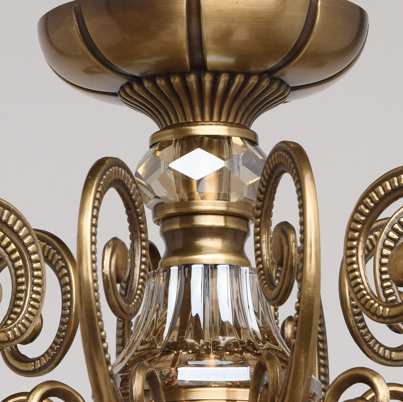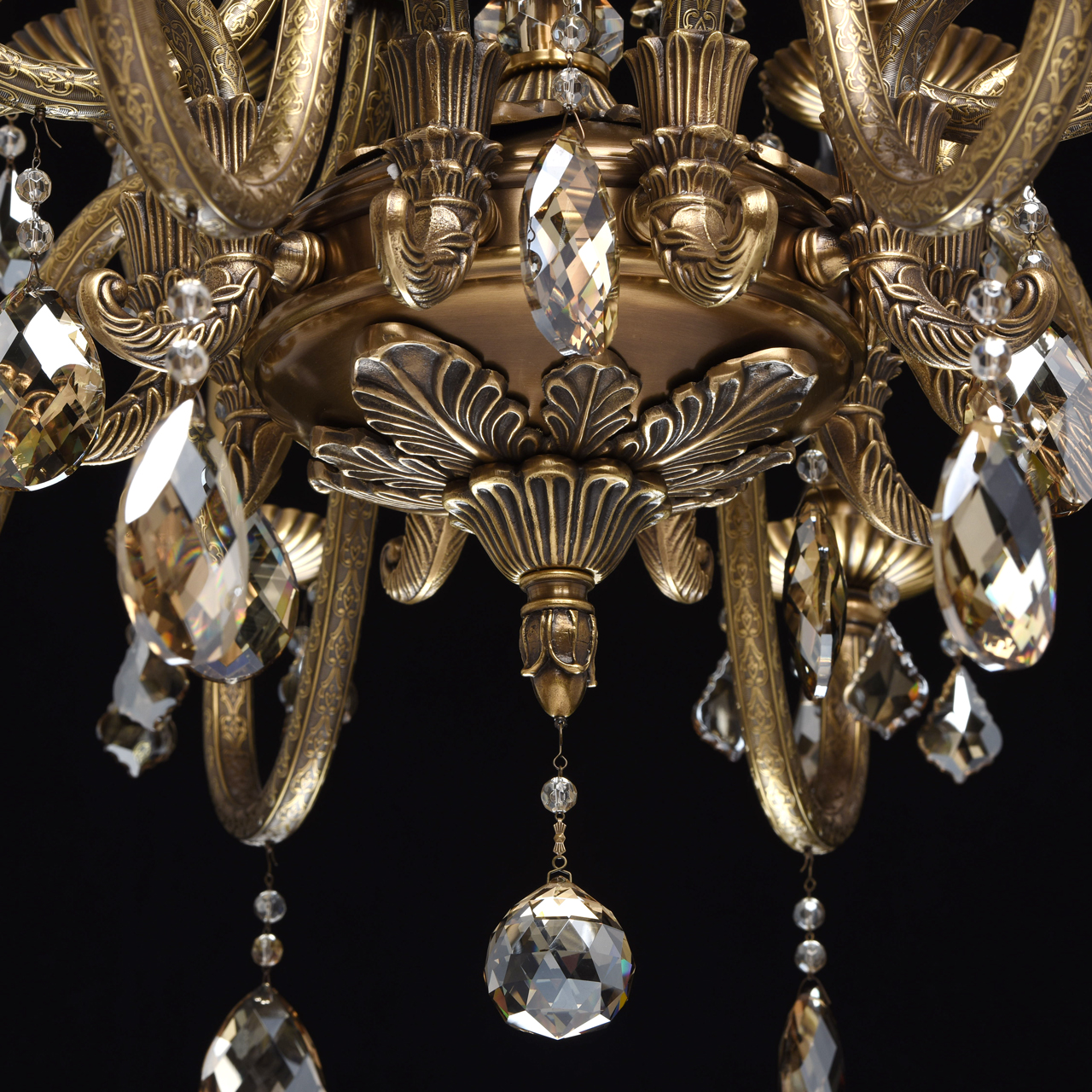 Изящное бронзовое основание светильника из коллекции Габриэль выполнено с многочисленными декоративными элементами, на каждой стороне рожка красуется искусная чеканка с растительным узором. Состаренный цвет античной бронзы гармонирует с оттенком гальванизированного хрусталя цвета топаза. Пройдет немного времени и подвесной светильник Габриэль по праву займет место антикварного светильника и будет предметом гордости будущих поколений.Преимущества модели