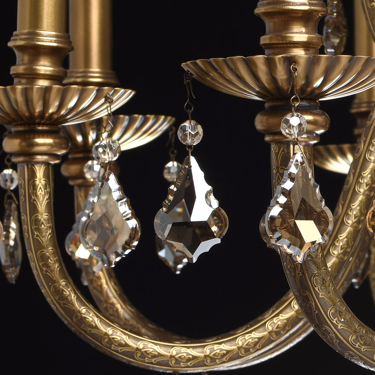 Необыкновенный дизайн, дорогой декор. Очень качественное исполнение – основание светильника выполнено из бронзы, в декоре используется высококачественный хрусталь. Уникальный декор рожков выполнен в виде искусной чеканки. Модель представлены в нескольких вариациях, есть бра – возможно комплексное освещение пространства. Со временем ценность модели будет увеличиваться т.к. при изготовлении используется надежный и долговечный металл - бронза.Стилевые решения интерьера