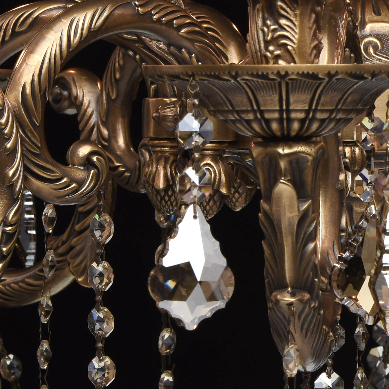 Необыкновенный дизайн, дорогой декор. Очень качественное исполнение – основание светильника выполнено из бронзы, в декоре используется высококачественный хрусталь. Уникальный декор рожков выполнен в виде искусной чеканки. Модель представлены в нескольких вариациях, есть бра – возможно комплексное освещение пространства. Со временем ценность модели будет увеличиваться т.к. при изготовлении используется надежный и долговечный металл - бронза.Стилевые решения интерьера