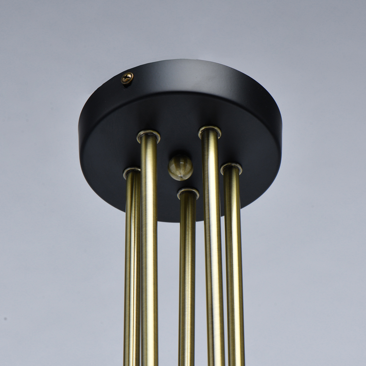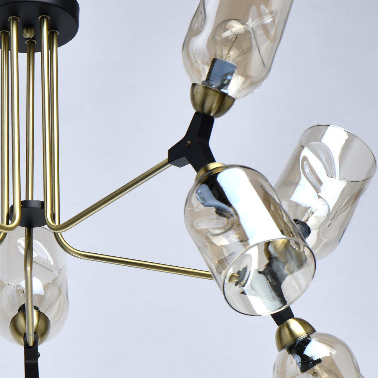 Актуальная комбинация металлов цвета латуни и черного. Оригинальные плафоны цвета топаза и обеспечивают насыщенный световой поток. Компактная высота светильника идеальна для стандартной высоты потолка. Поворот плафонов при сборке настраивается с помощью декоративного держателя. Широкий диаметр конструкции обеспечивает высокие параметры освещенности. Заменяемые источники света удобны в эксплуатации. Полная семья из бра и потолочных светильников на 6 и 10 ламп.Стилевые решения интерьера
