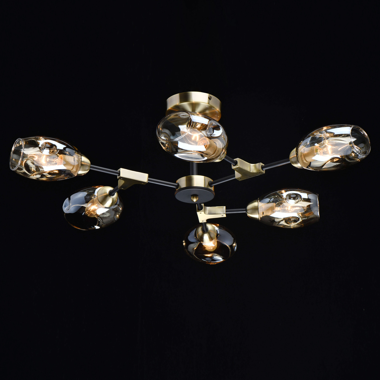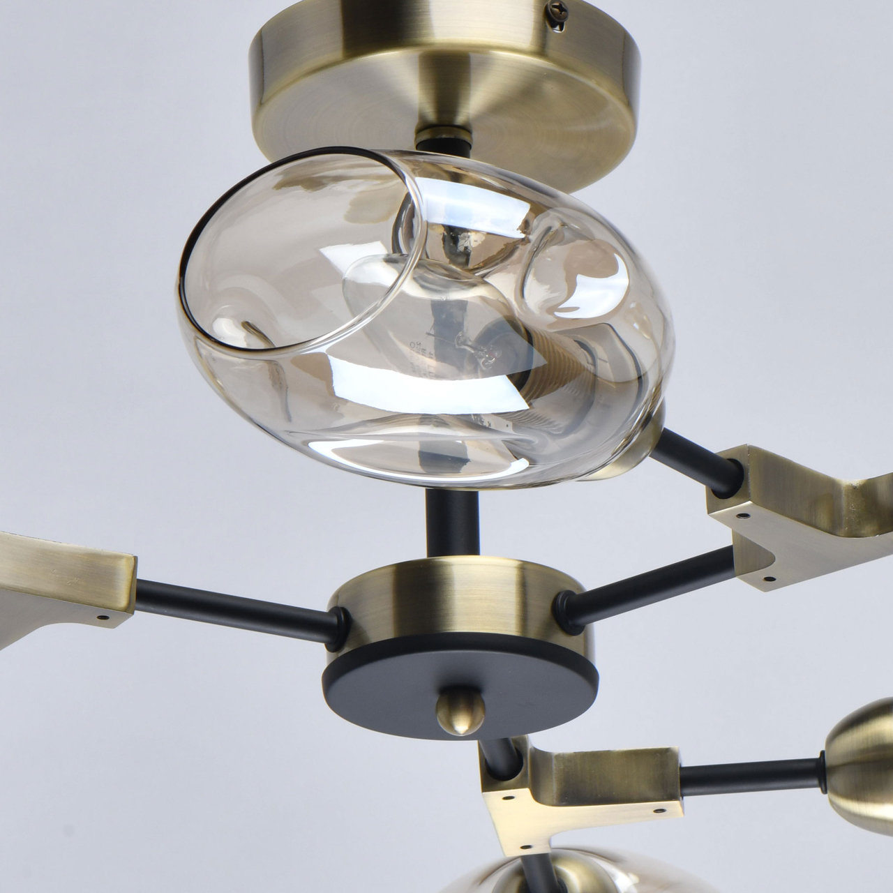 Основание светильника выполнено из металла и окрашено в черный цвет. Отдельные элементы основания гальванизированы в цвет латуни. Стеклянные плафоны отлиты в сложную форму и гальванизированы.Тип помещения