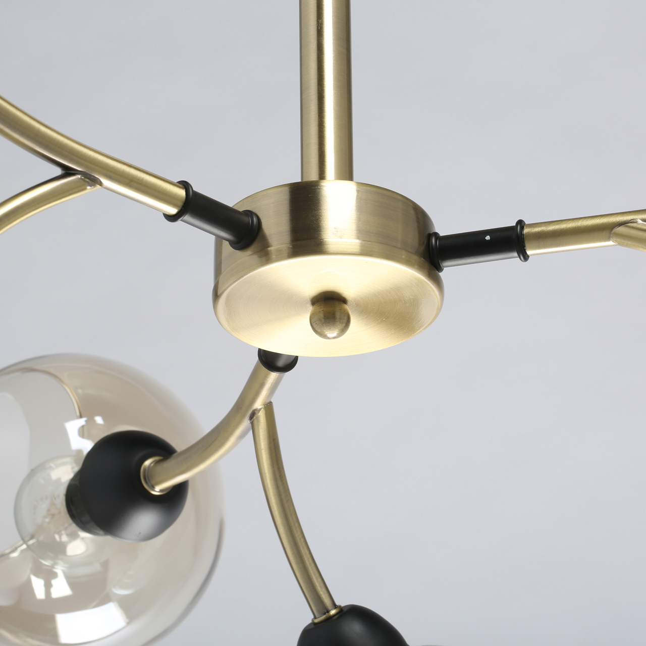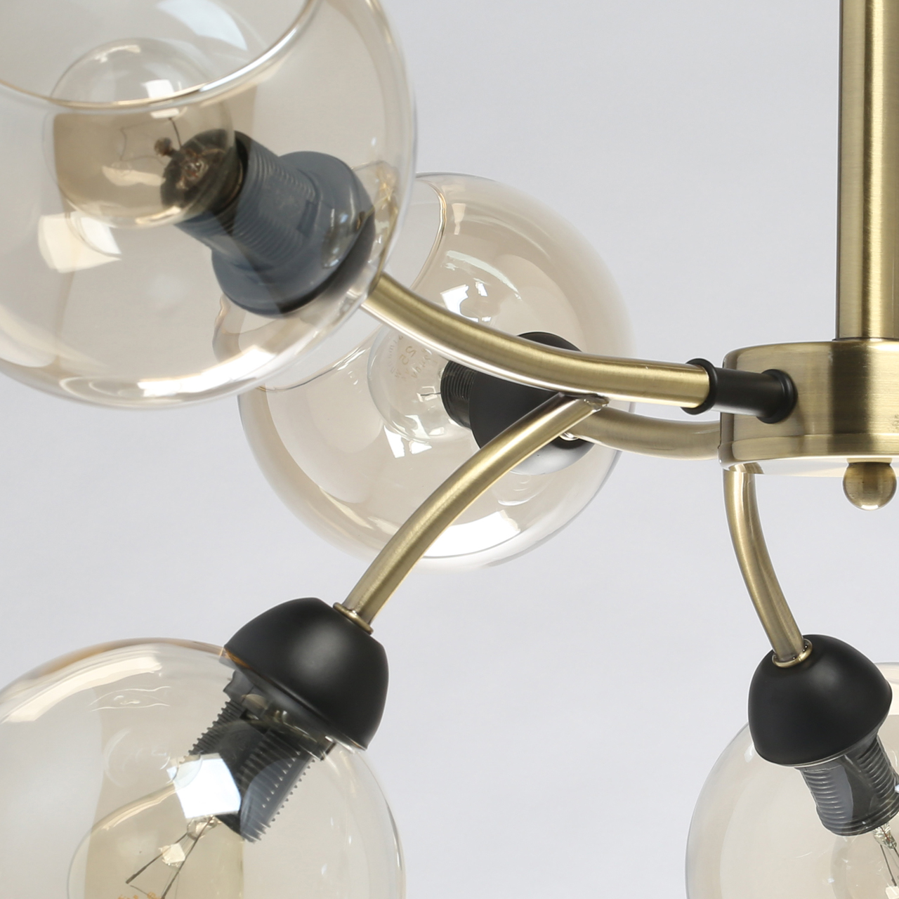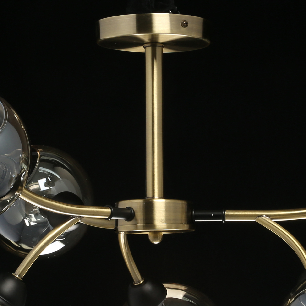 Основание светильника выполнено из металла и окрашено в черный цвет. Отдельные элементы основания гальванизированы в цвет латуни. Стеклянные плафоны отлиты в сложную форму и гальванизированы в цвет шампань.Тип помещения