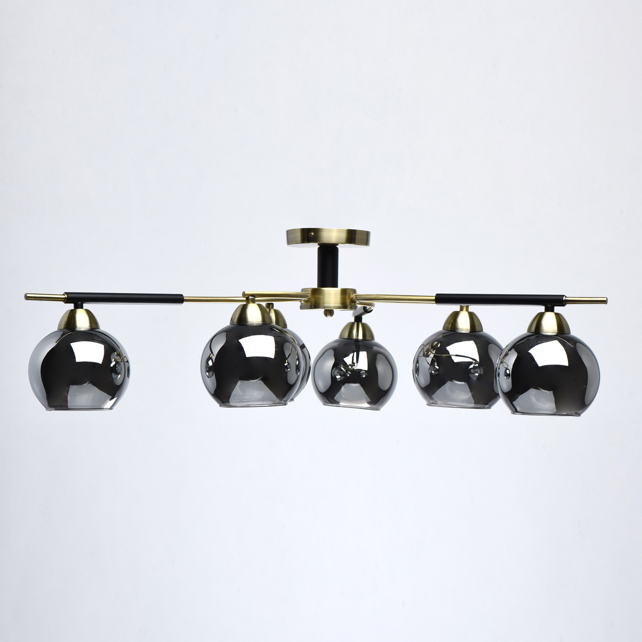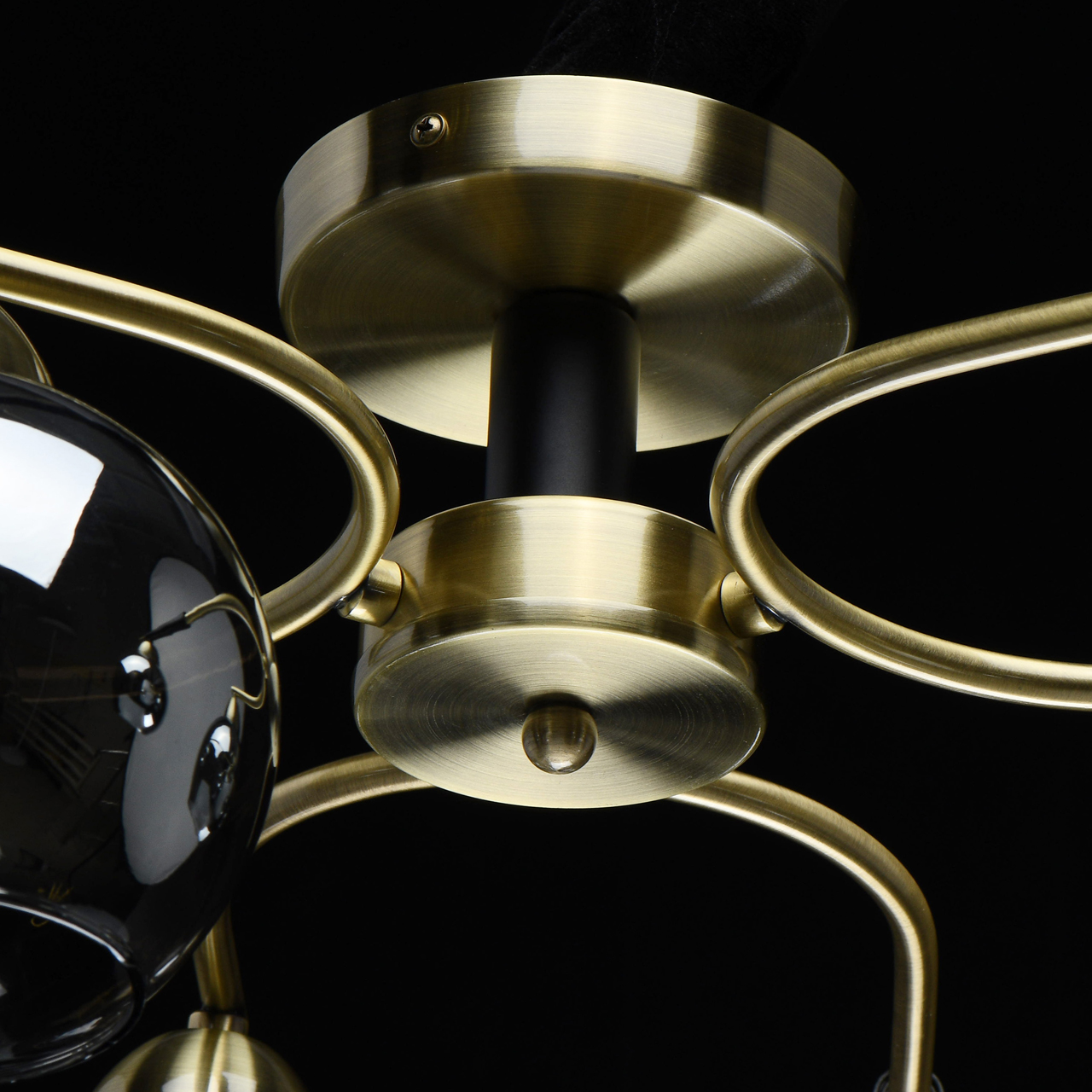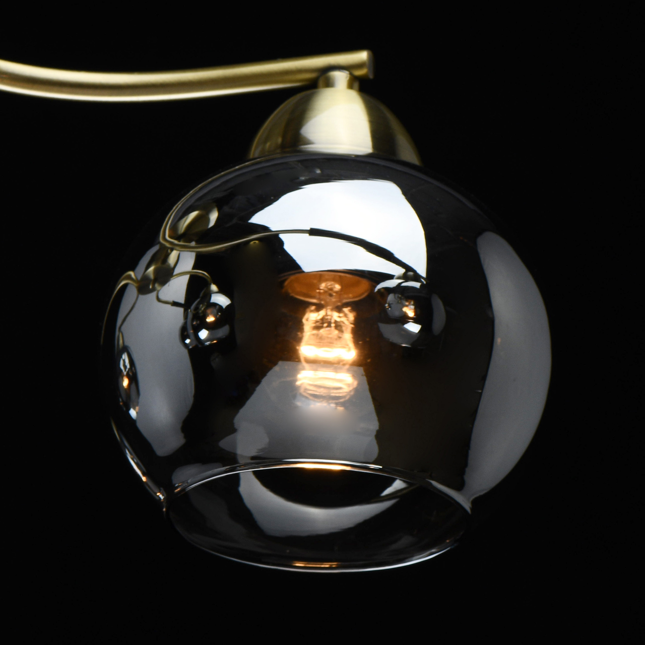 Металлическое основание светильника гальванизировано в цвет античной бронзы. Отдельные элементы основания окрашены в черный цвет. Стеклянные плафоны гальванизированы в дымчатый цвет.Тип помещения