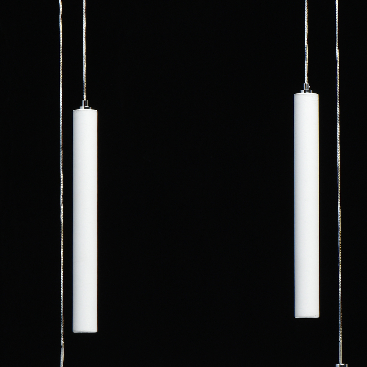Основание светильника выполнено из металла и обработано по технологии порошкового окрашивания в белый цвет. Светодиодные источники света закрыты белым матовым акрилом. Светодиоды диммируемые. Светильник снабжен ручным лифтом.Тип помещения