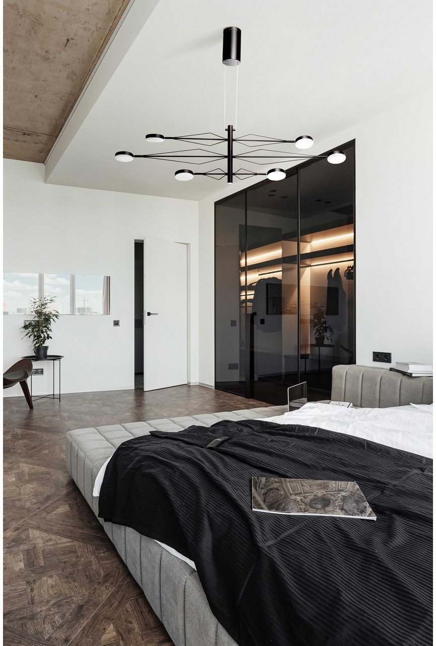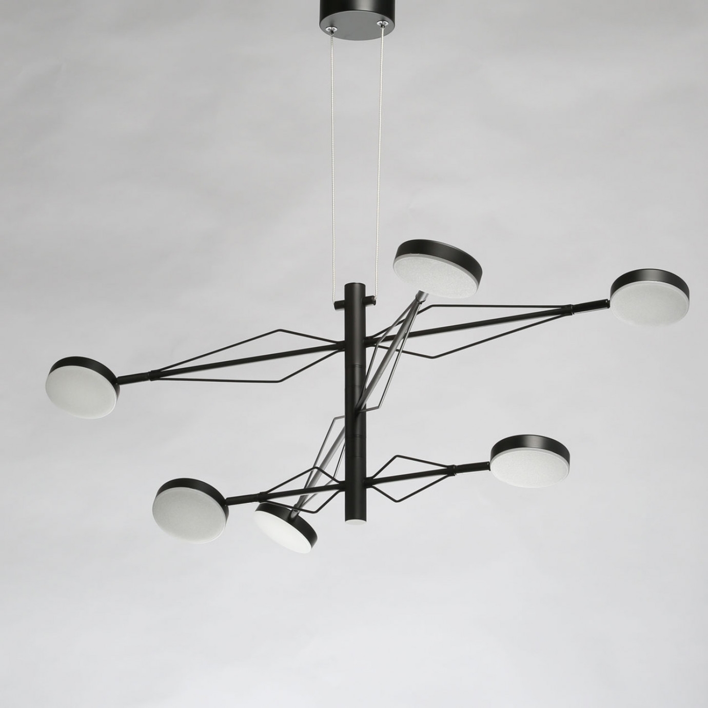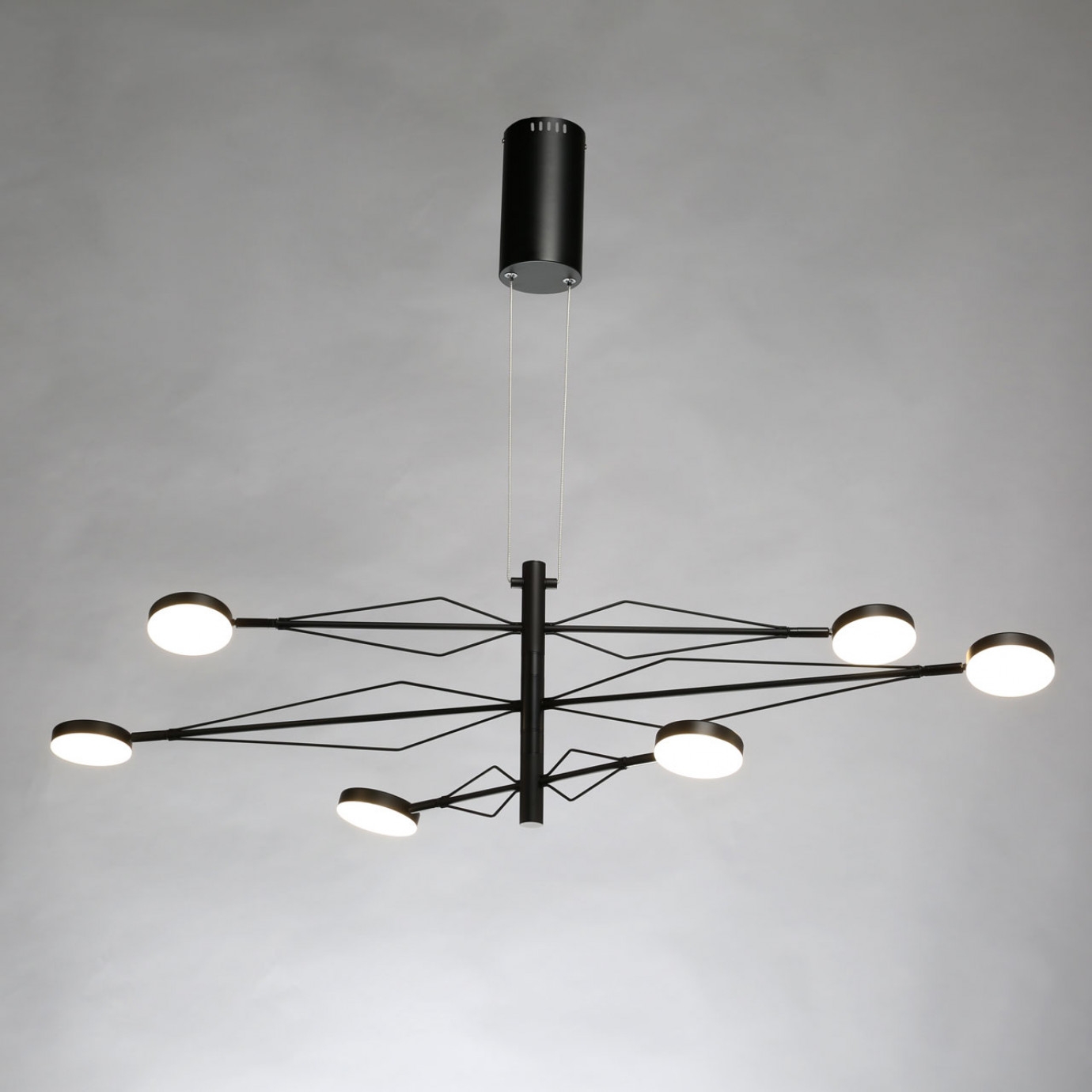 Подвесная люстра светодиодная 632017206 из серии Гэлэкси от немецкого производителя DeMarkt украсит гостиную, кафе, кухню, кабинет, офис в стиле хай-тек. Материал основы — металл, цвет черный. Светильник имеет 6 рассеивателей из акрила. Светодиоды обладают мощностью 36W. Площадь освещения составит до 16,74 кв. м., питание от сети 220V. Монтаж производится на пластину. Габариты: длина — 111 см, ширина — 9,2 см, высота — 150 см, длина подвеса — 103,5 см. ЗХарактеристики