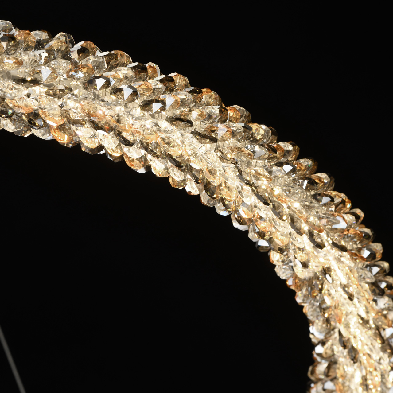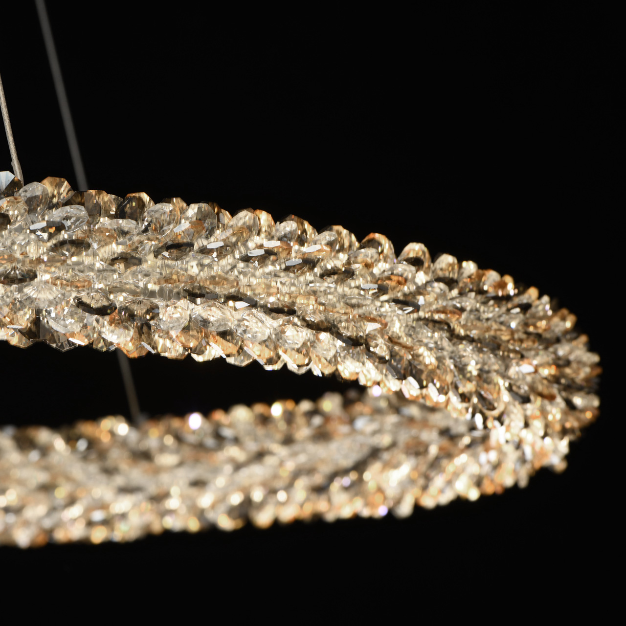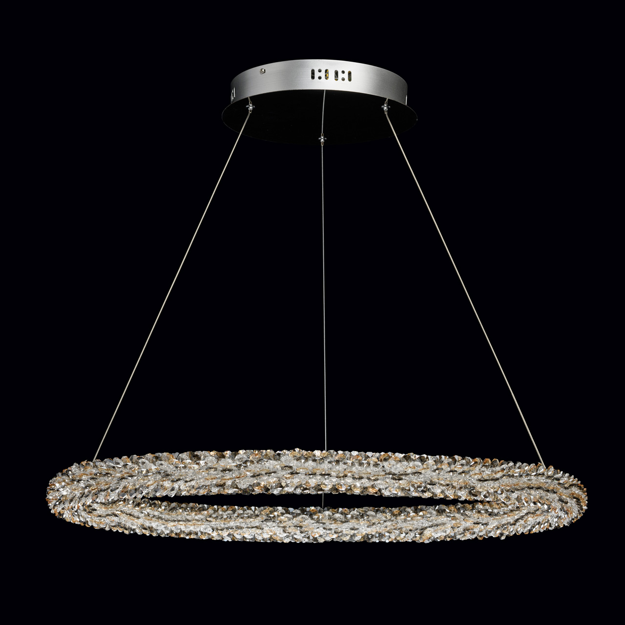 Люстра из коллекции «Гослар» сочетает в себе современный трендовый дизайн и подлинную роскошь. Хромированное металлическое основание с зеркальным эффектом дополнено оригинальным плафоном в виде концентрического круга – это один из последних трендов в мире света. Кольцо выполнено в двух вариациях, каждая из которых смотрится по-своему шикарно: это витые бусы из прозрачного хрусталя, а также переплетение хрустальных бус трех оттенков – дымчатого, прозрачного и янтарного. Помимо этого, светильник радует функциональностью: с помощью пульта можно контролировать яркость освещения.Преимущества модели