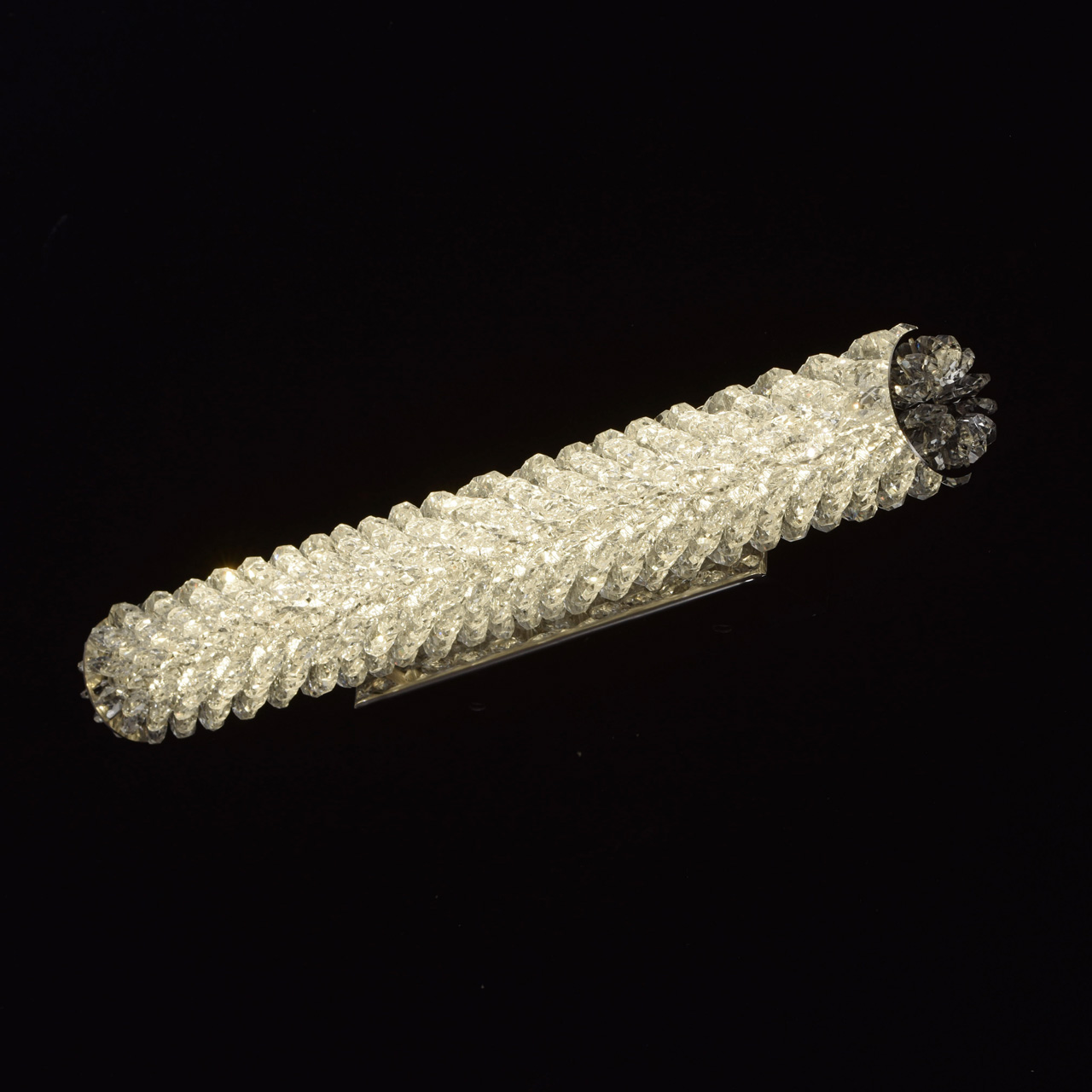 Роскошный настенный светильник из коллекции «Гослар» поражает своей утонченностью и необычной красотой. Хромированное металлическое основание дополнено зеркальным эффектом, но главная изюминка модели - оригинальный удлиненный плафон, выполненный в форме цилиндра из витых бусин прозрачного хрусталя. Светильник можно использовать в качестве элегантного настенного бра.Преимущества модели
