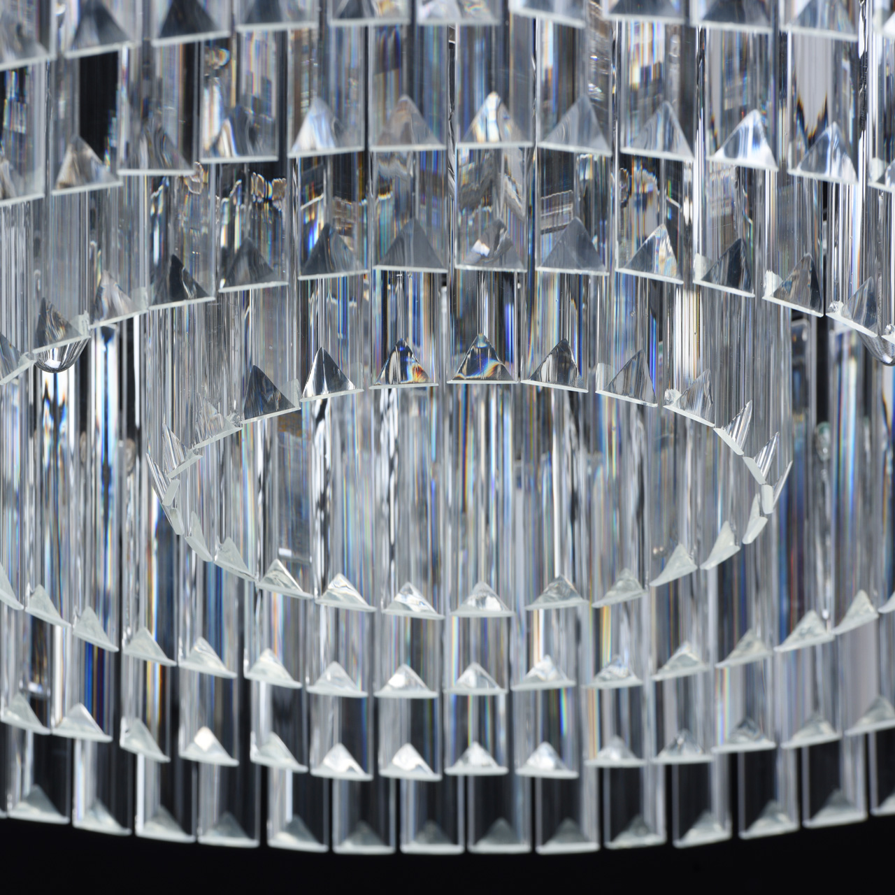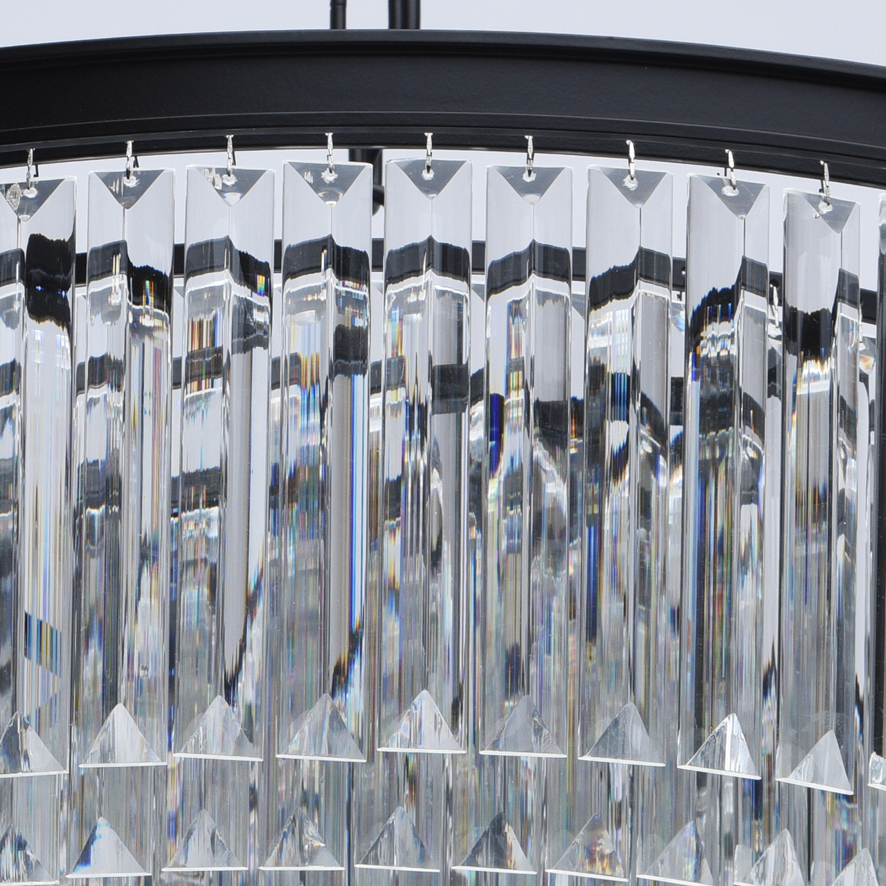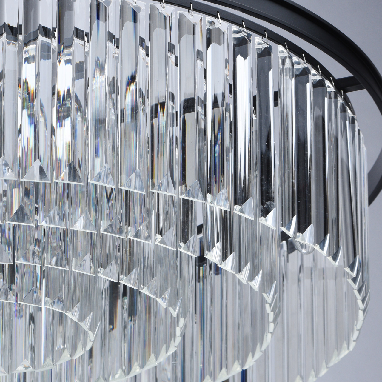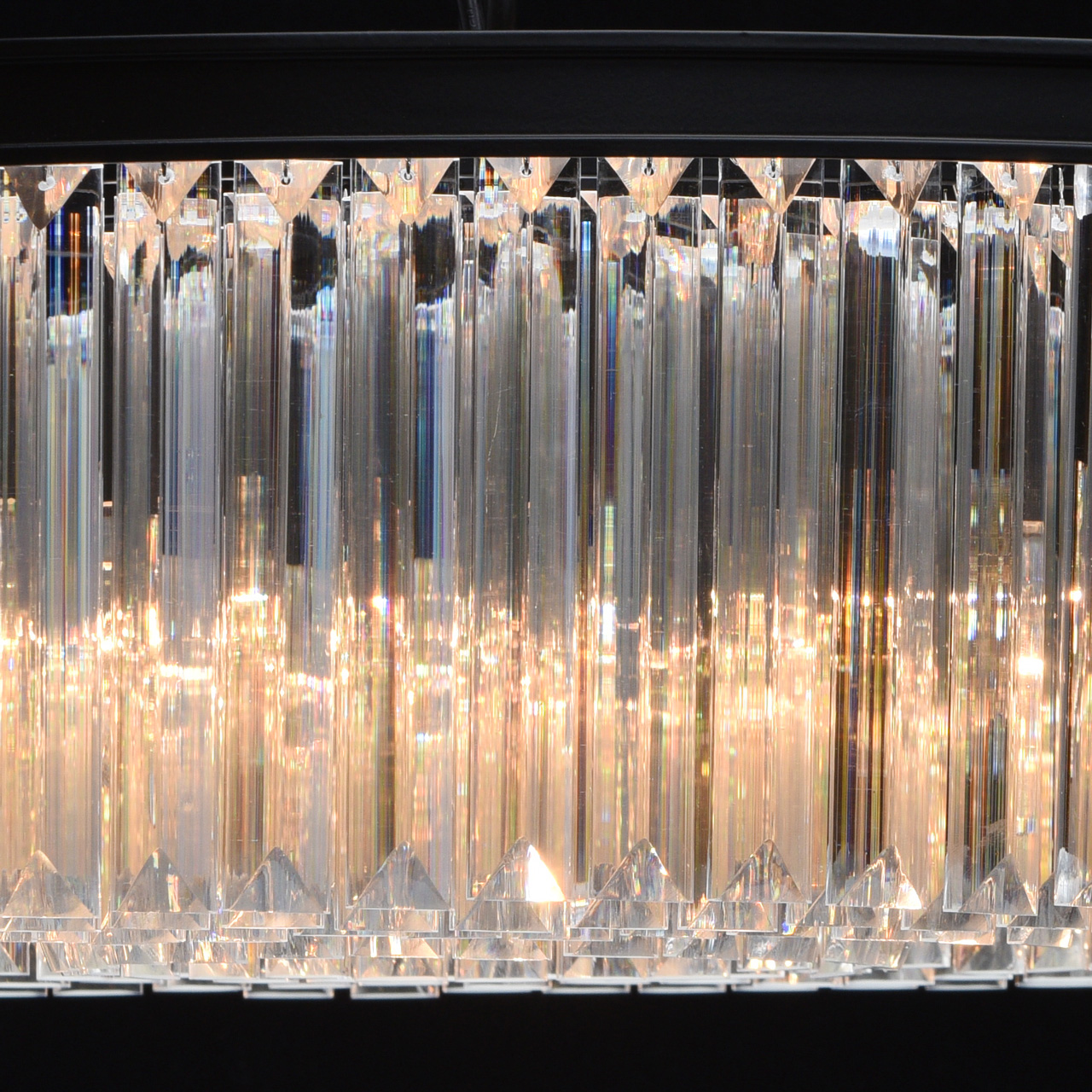 Основание светильника выполнено из металла и окрашено в черный матовый цвет. Светильник декорирован прозрачным хрусталем прямоугольной формы.Тип помещения