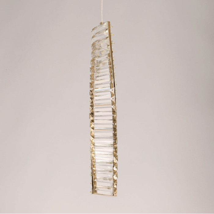 Актуальный цвет латуни выглядит уютно и актуально. Оригинальный плафон из хрустальных элементов добавляет подвесу элегантности и стиля. Хрусталь создает красивую игру света и отражения, достигая максимального эстетического эффекта. Светодиодные источники света экономичны и безопасны. Возможность регулировать комфортную высоту.Металлическое основание подвесной люстры гальванизировано в цвет латуни. Люстра декорирована прозрачным хрусталем.