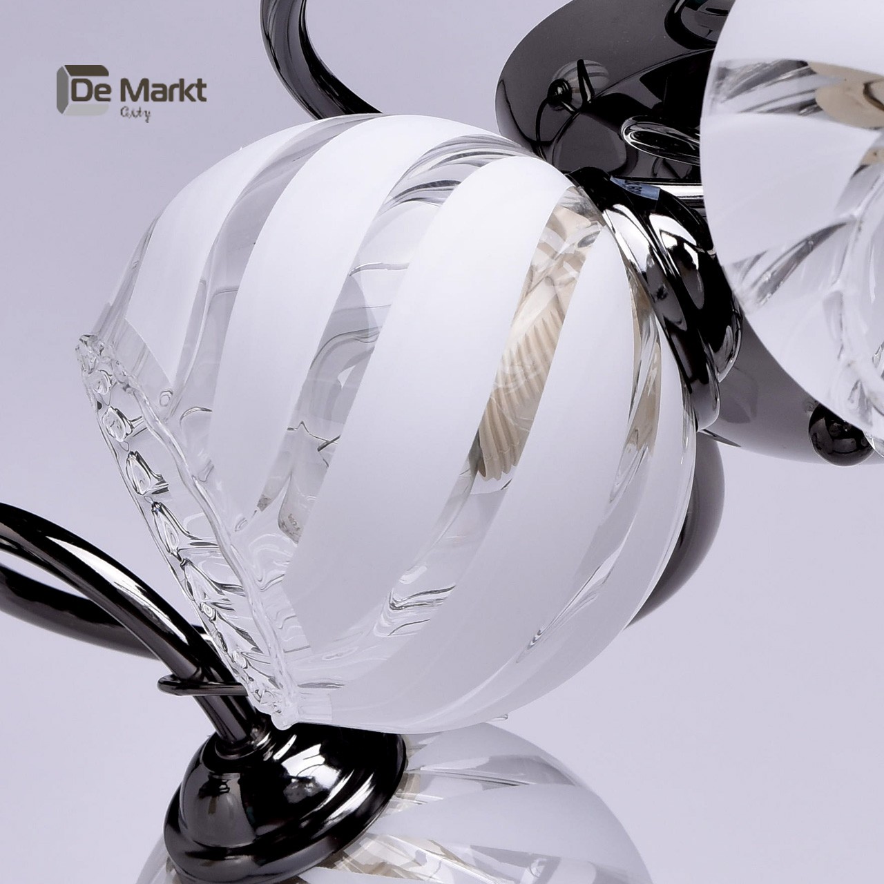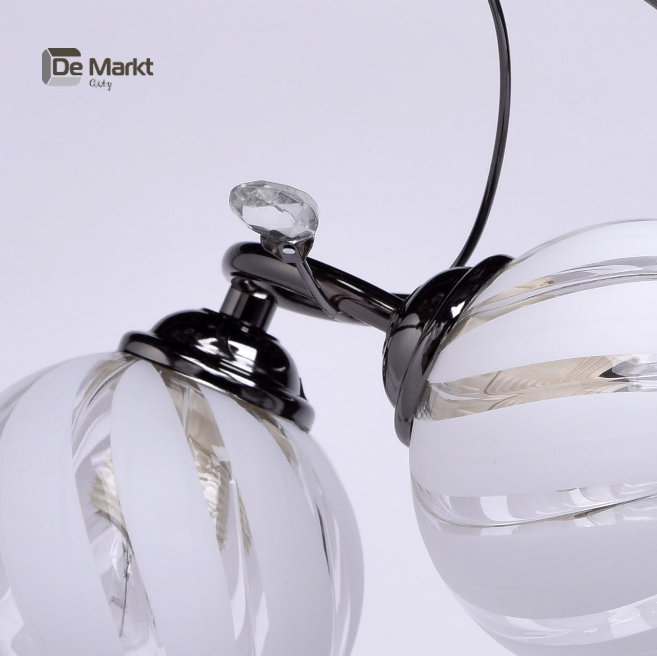 Люстра из коллекции «Грация» - это сочетание необычных форм, плавных линий и оригинального дизайна. Основание из металла цвета никеля эффектно смотрится в сочетании с двойными изогнутыми витыми рожками. Плафоны округлой, шарообразной формы декорированы рифленым краем и стильным полосатым рисунком в виде сочетания прозрачных и белых полос. Приятные плюсы – люстра по демократичной цене, идеальна для стандартных потолков и имеет высокие параметры освещенности порядка 18 кв.м.Преимущества модели