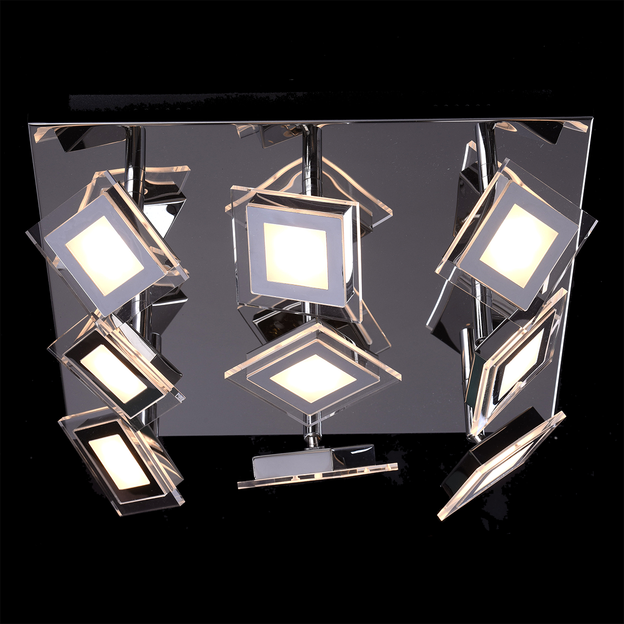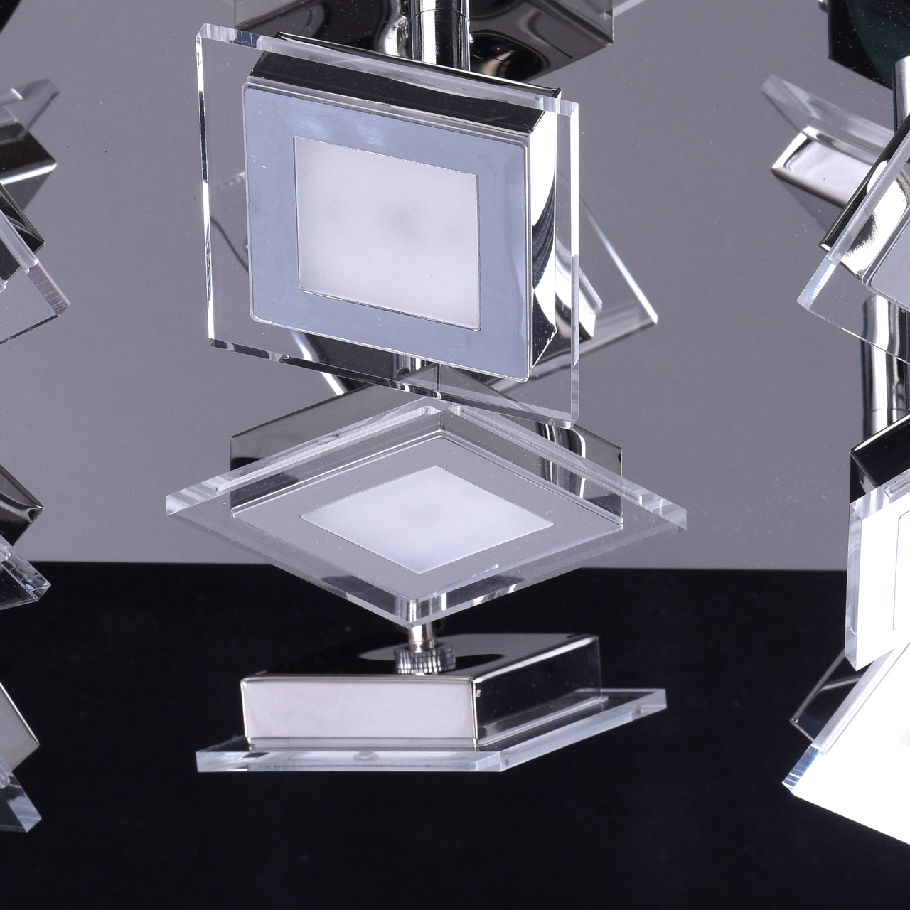 Светильник «Граффити» ― образец современного дизайна, сочетающего блеск хромированных элементов и полупрозрачность акрила. Основание покрыто зеркальным слоем, в котором отражаются квадратные плафоны со встроенными светодиодами, оснащенные системой спотов и декорированными вставками из акрила. Отличное решение для просторных помещений, где необходим яркий свет. Дизайн светильника не оставит равнодушными поклонников строгой геометрии и современного стиля.Преимущества модели