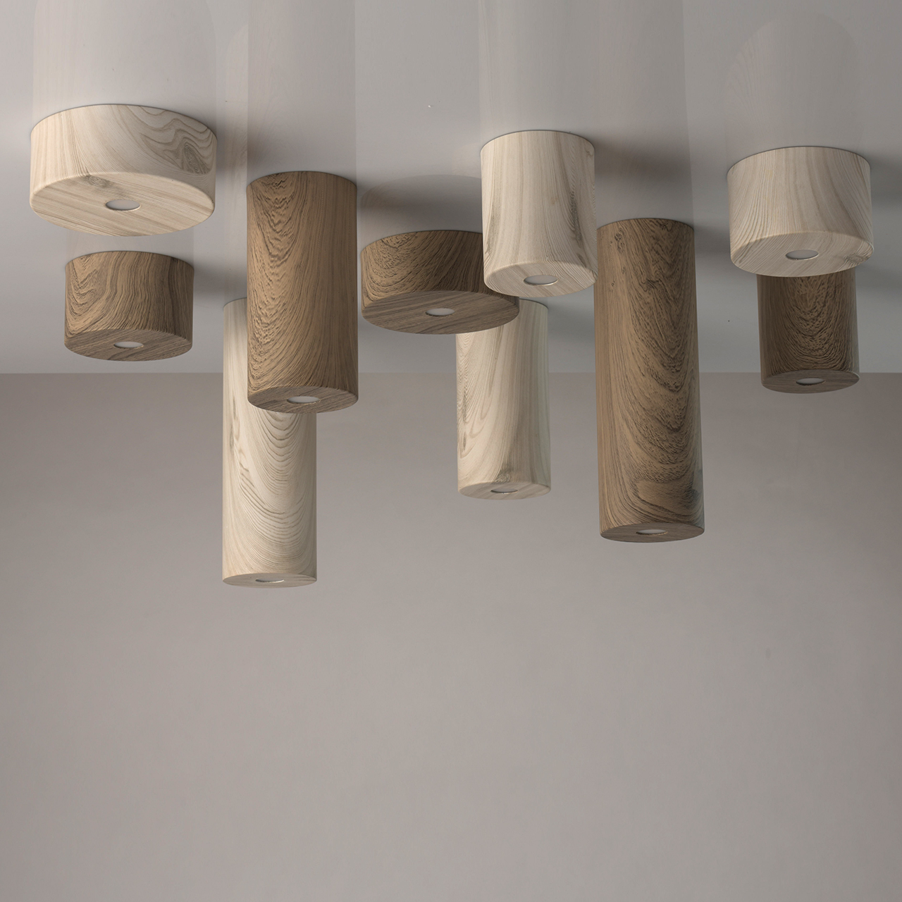 Стильный потолочный светильник прекрасно подойдет для создания точечной направленной подсветки в интерьерах с различным стилевым решением: от минимализма до эко-стилистики. Основание и плафон выполнены из металла и декорированы оригинальным рисунком, имитирующим фактуру натурального дерева. Есть две цветовые вариации - оттенка светлого и темного дерева, а значит, можно подобрать модель, идеально подходящую интерьеру по цветовой палитре. Источники света-светодиоды скрыты под вставкой из матового акрила. Широкая семья позволяет использовать светильники в комплексе, комбинируя их по высоте и цвету, благодаря чему можно создать по-настоящему эффектную подсветку.Преимущества модели